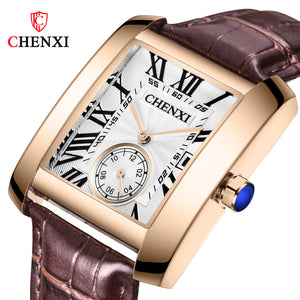 CHENXI men's casual watch fashion leather calendar square quartz needle and figure watch CX-063A