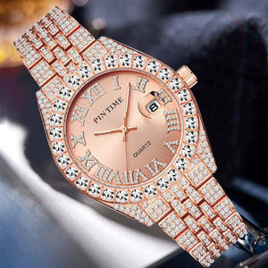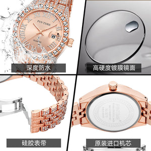 PINTIME Men's Frank Starry Retro Steel Yacht Diamond-Embedded quartz calendar casual men Watch PT1573