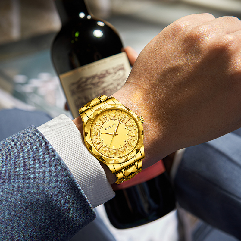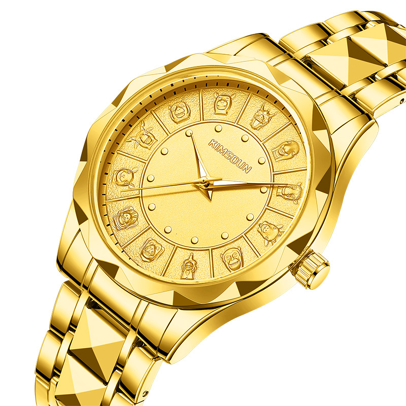 假机械手表男士金诗顿品牌十二生肖腕表商务钢带防水石英表男表