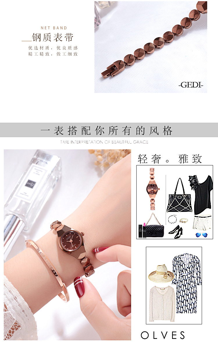 歌迪网红合金手链表学生款小众高级感石英表小巧精致女士手表批发