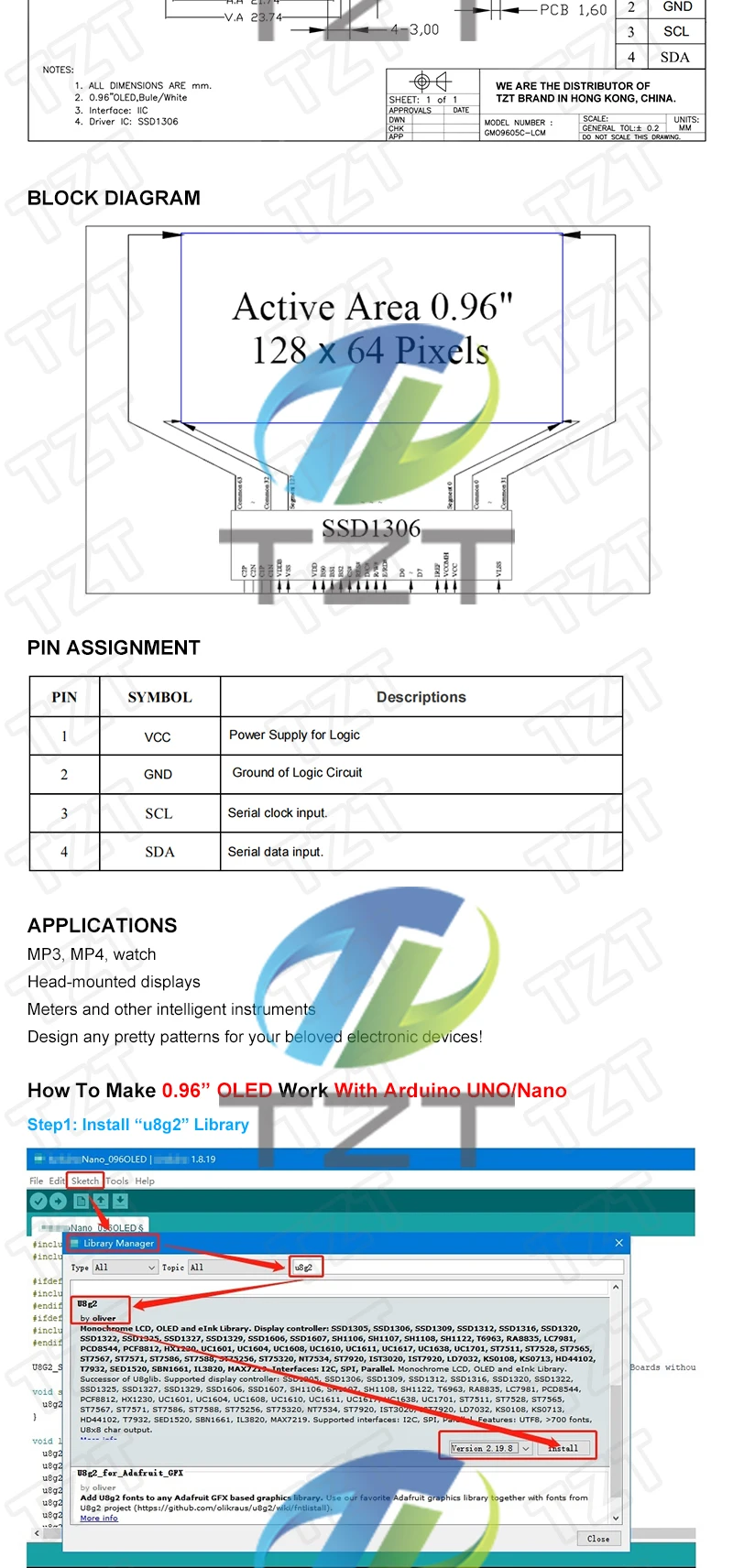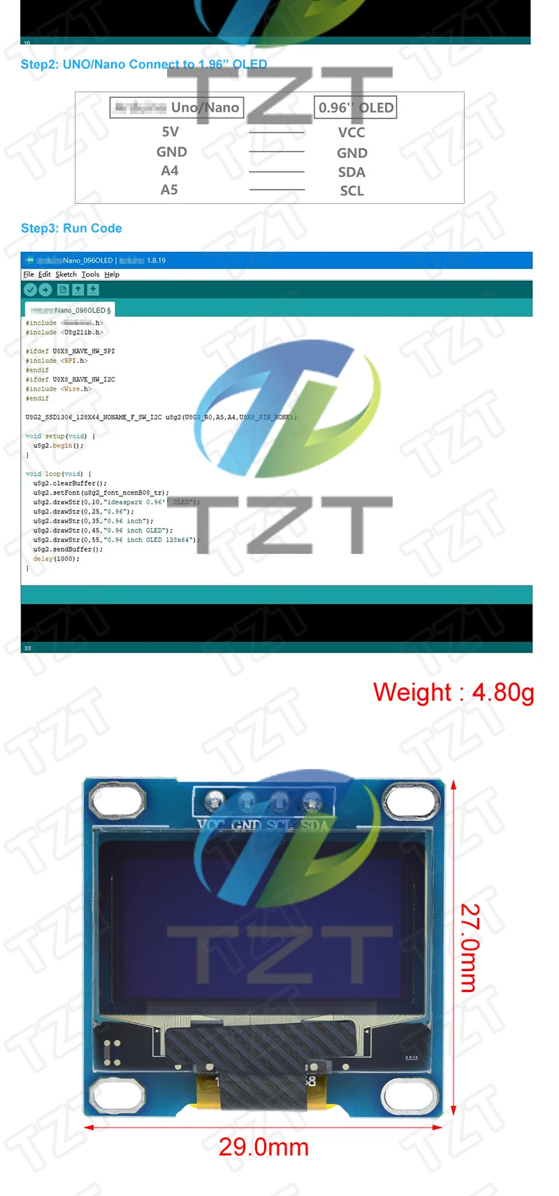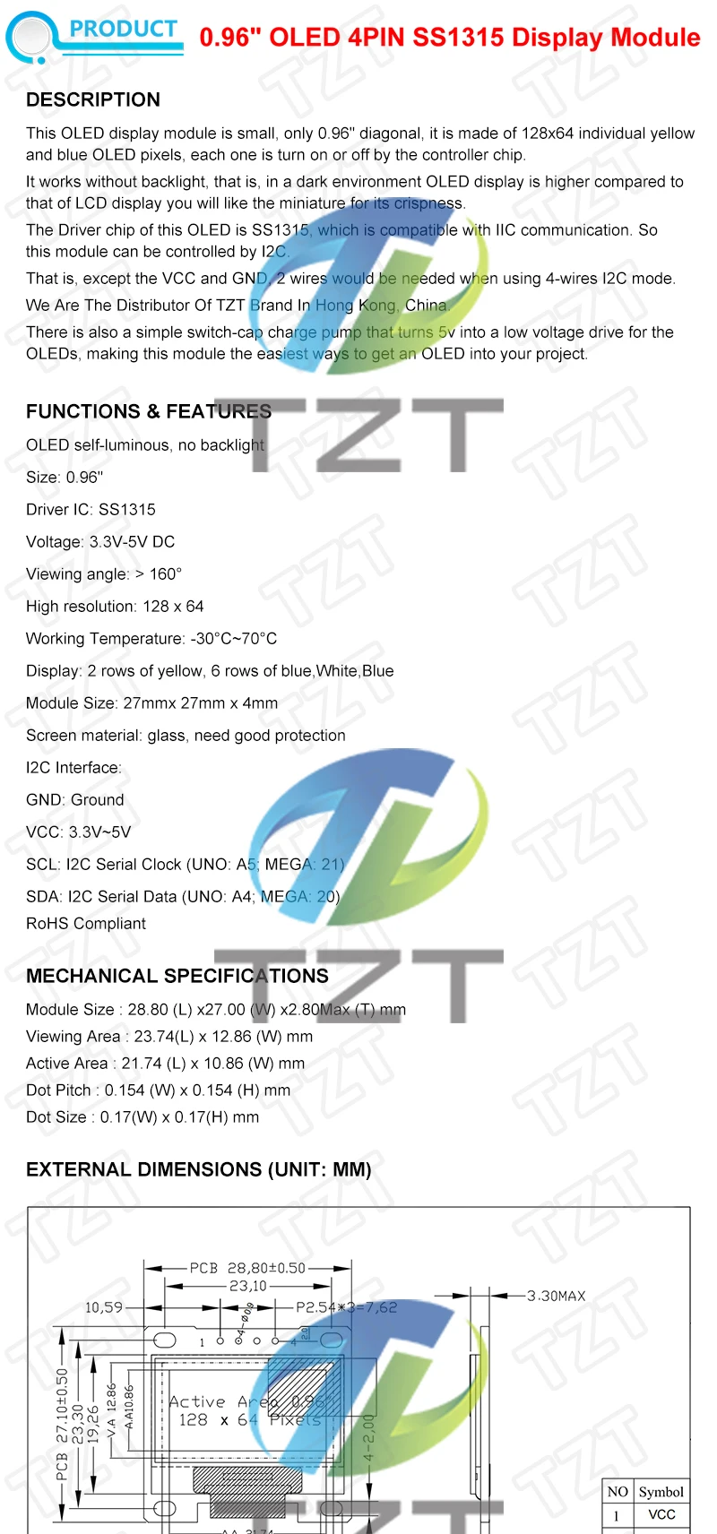 0.96 inch OLED 4PIN 7PIN IIC Serial White Display Module 128X64 I2C SSD1306 12864 LCD Screen Board for Arduino