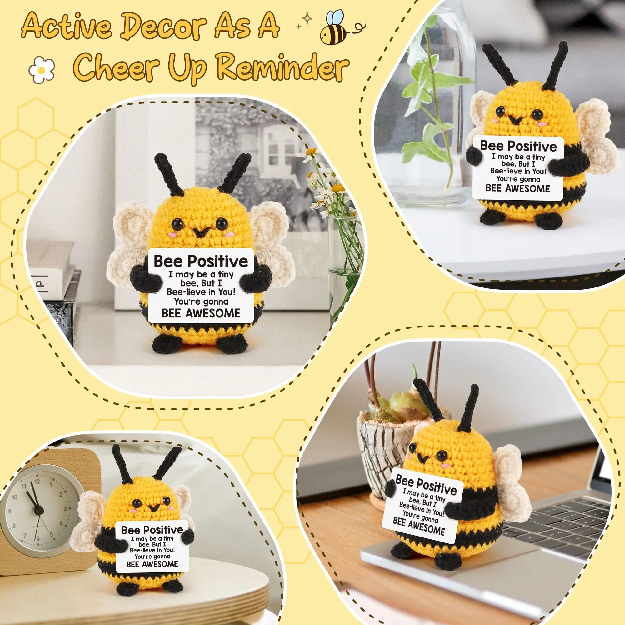 1 Piece of Mini Cute Crochet Positive Bee, Creative Plush Holiday Gift Desktop Decoration Ornament, Motivational and Encouraging Positive Duck and Penguin with Positive Energy Card, Christmas Stocking Filler Gift