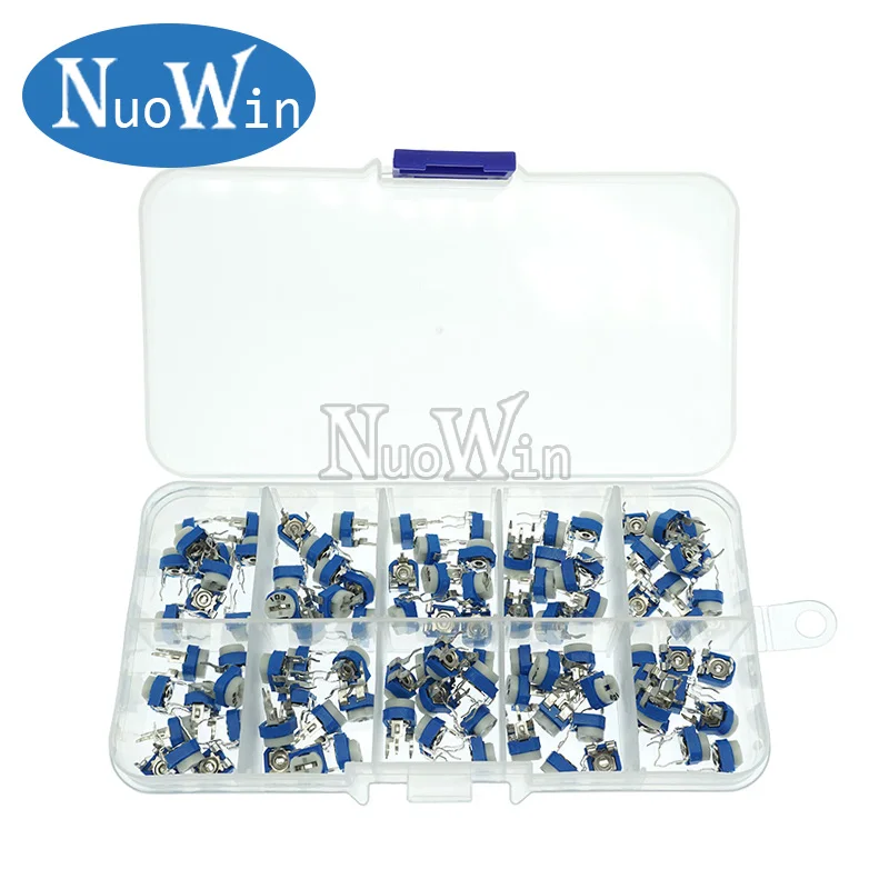 RM065 Trimming Potentiometer Kit with Box 10 values*10pcs=100pcs + 1box RM065 1K(102) 10PCSRM065 10K(103) 10PCSRM065 100K(104) 10PCSRM065 1M(105) 10PCSRM065 2K(202) 10PCSRM065 20K(203) 10PCSRM065 200K(204) 10PCSRM065 500 ohm (501) 10PCSRM065 5K(502) ...