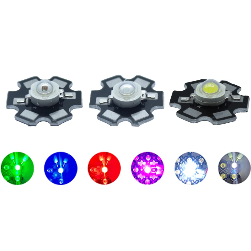 10pcs 1W 3W High Power LED Full Spectrum White Warm white Green Blue Deep Red 660nm Royal blue IR UV With 20mm Black Star PCB