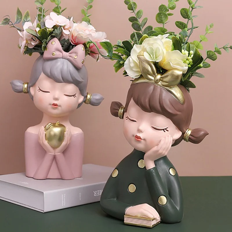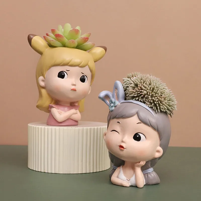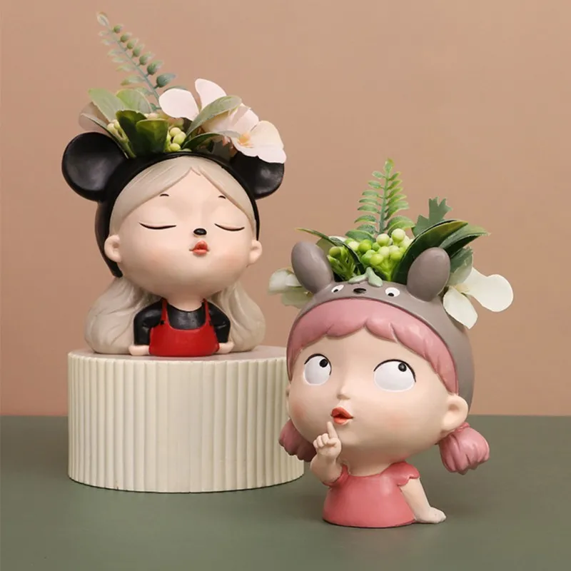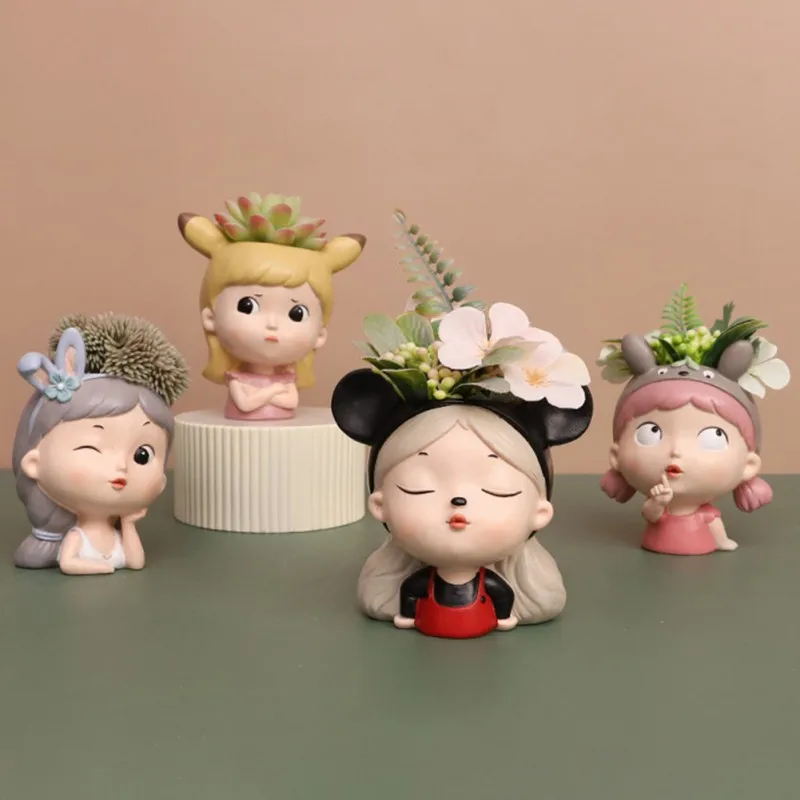 12 Style Cute Girl Succulent Flowerpot Resin Flower Pot Creative Plant Potted For Home Living Room Tabletop Garden Decoration wholesale bulk price