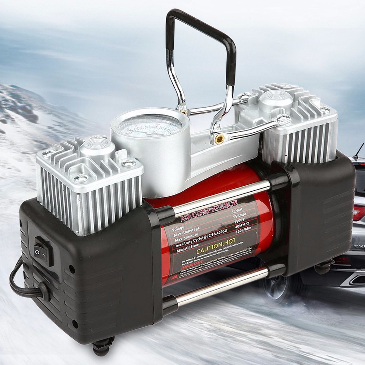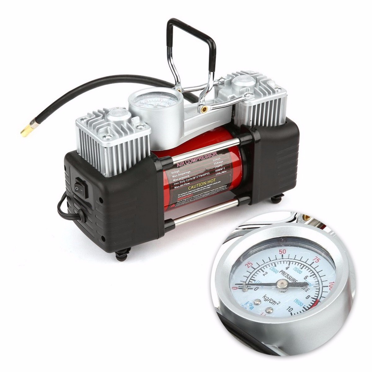 12V 150PSI Portable Heavy Duty 2 Cylinder Car Air Compressor, Universal Tire Inflator Pump For Car Trucks Bicycle Black