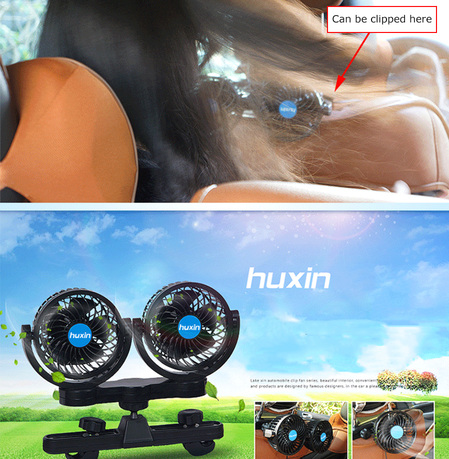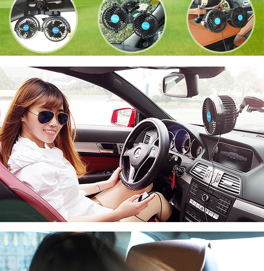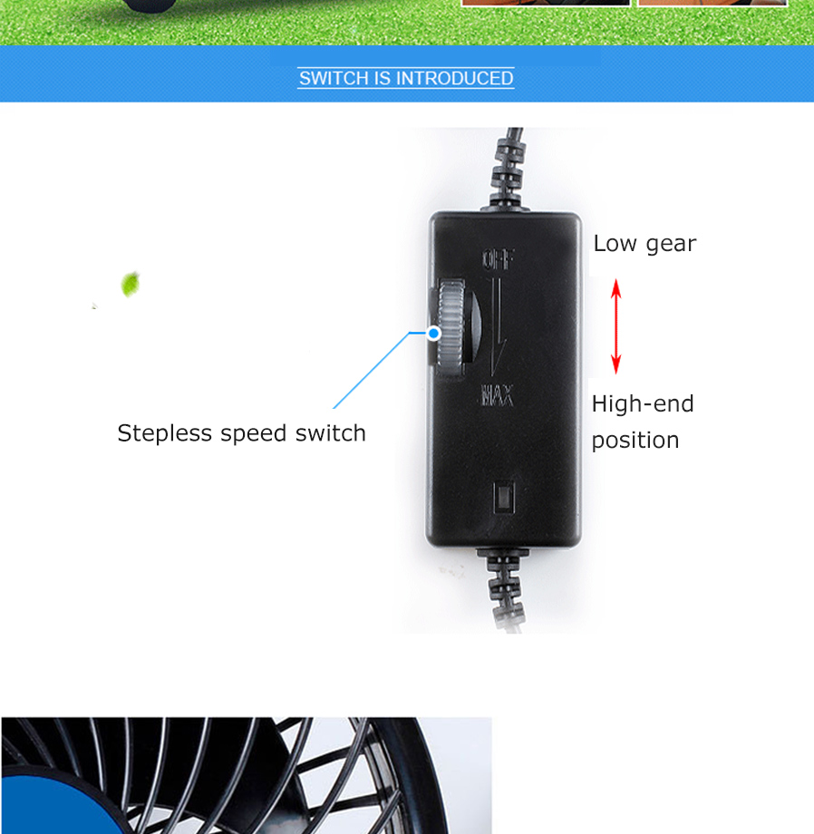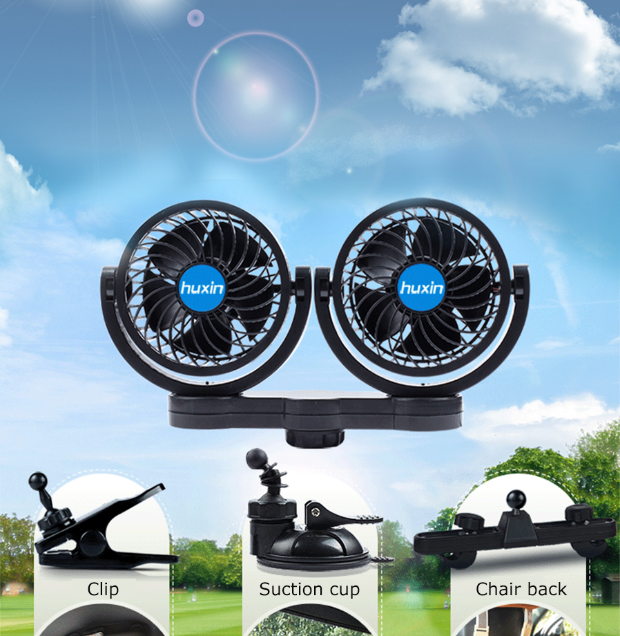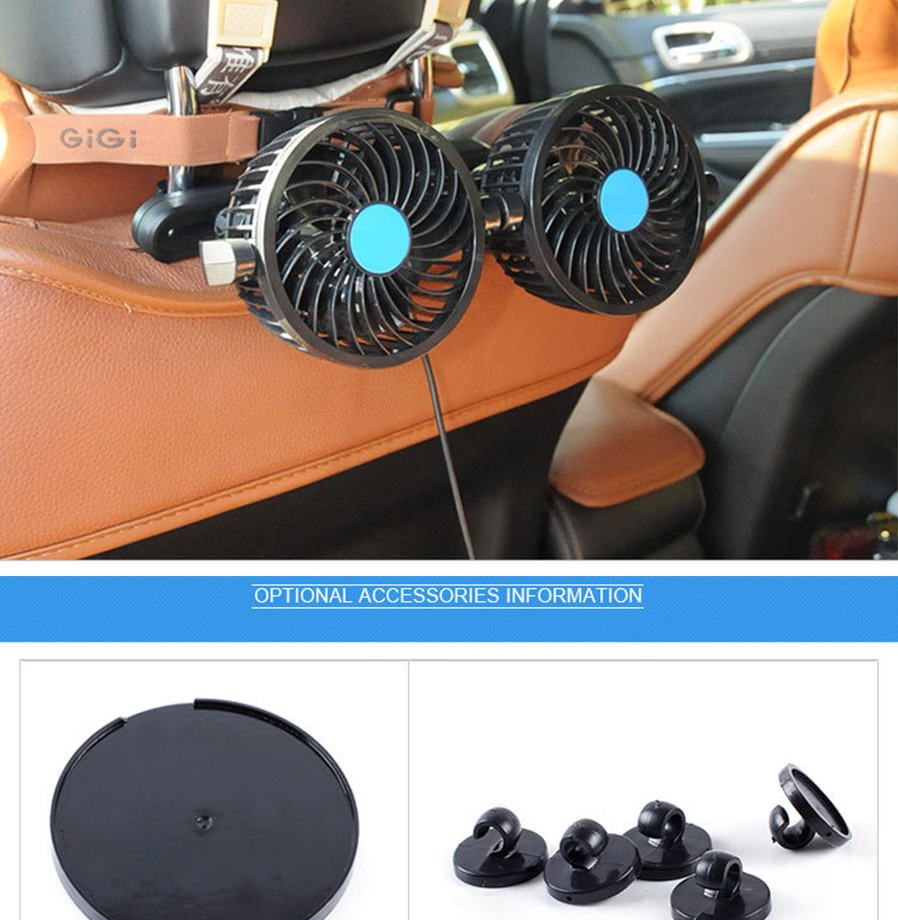 12V 4inch Double-headed Stepless Car Fan Portable Car Vehicle Truck Back Seat Air Fan Adjustable Cooler Cooling Fan