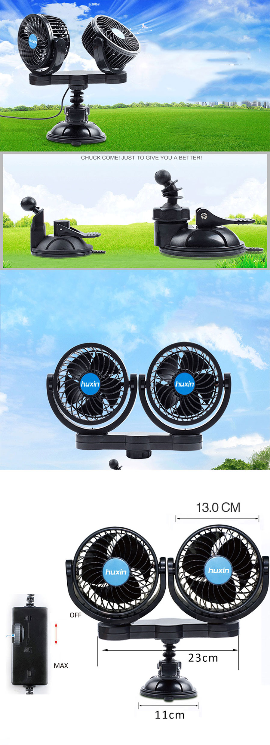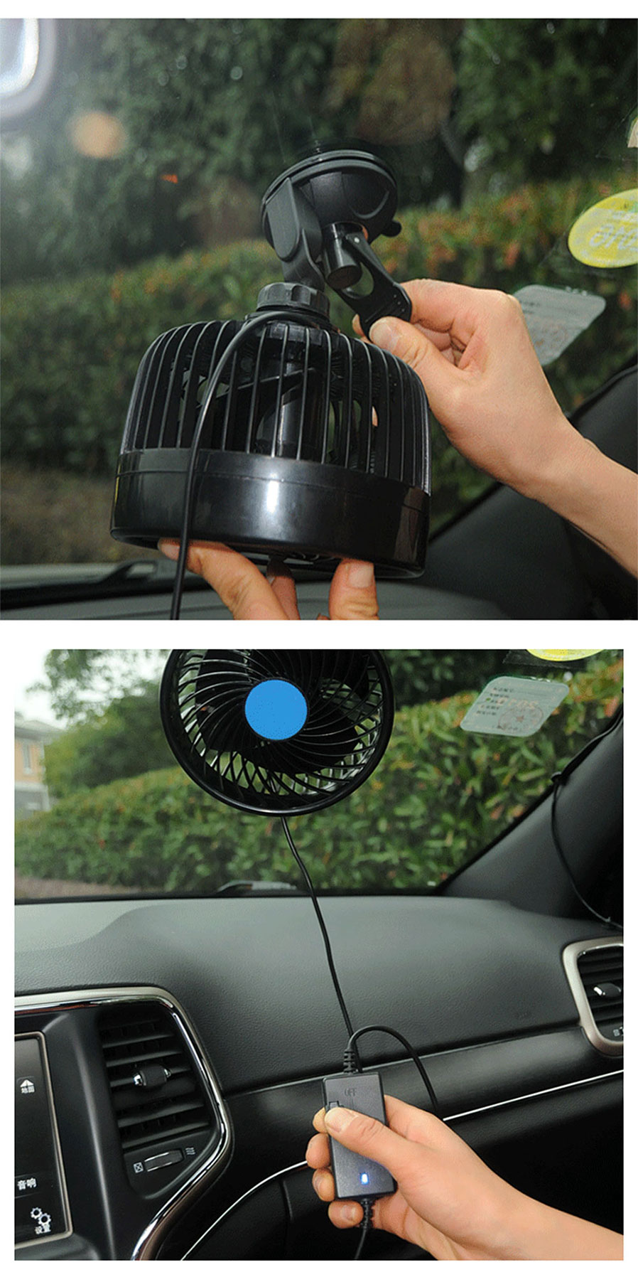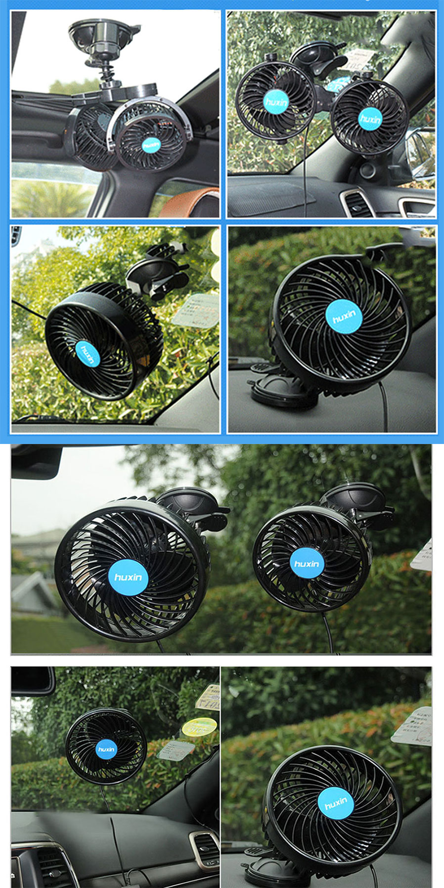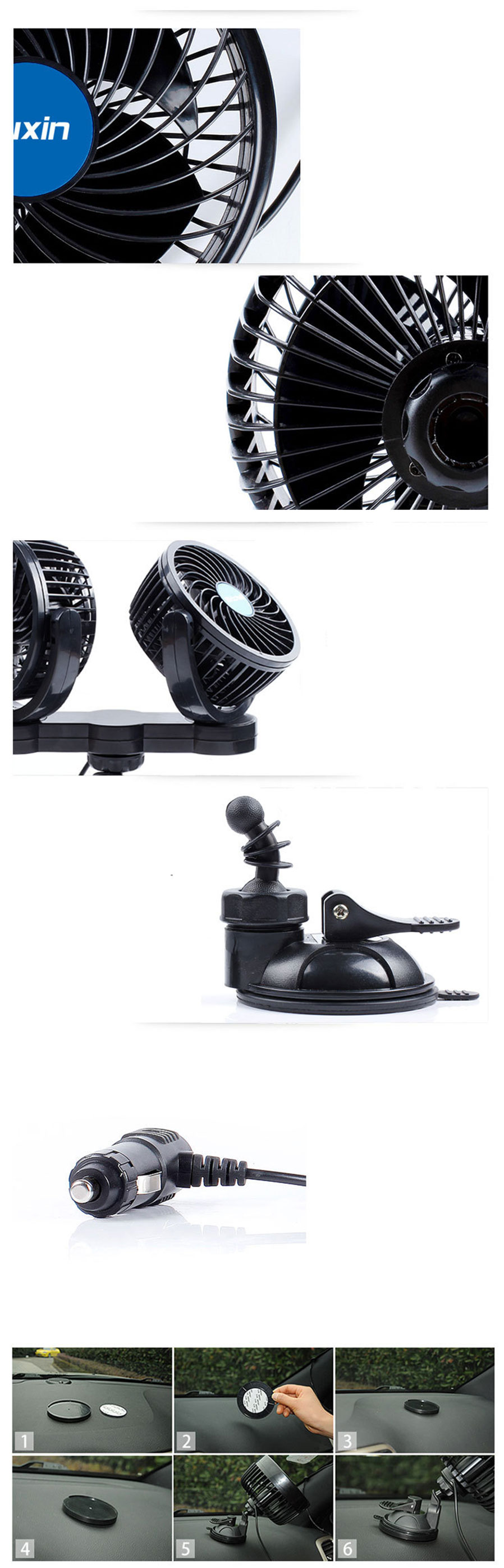 12V Double-headed Stepless Car Fan Portable Car Vehicle Truck Suction Cup Air Fan Adjustable Cooler Cooling Fan