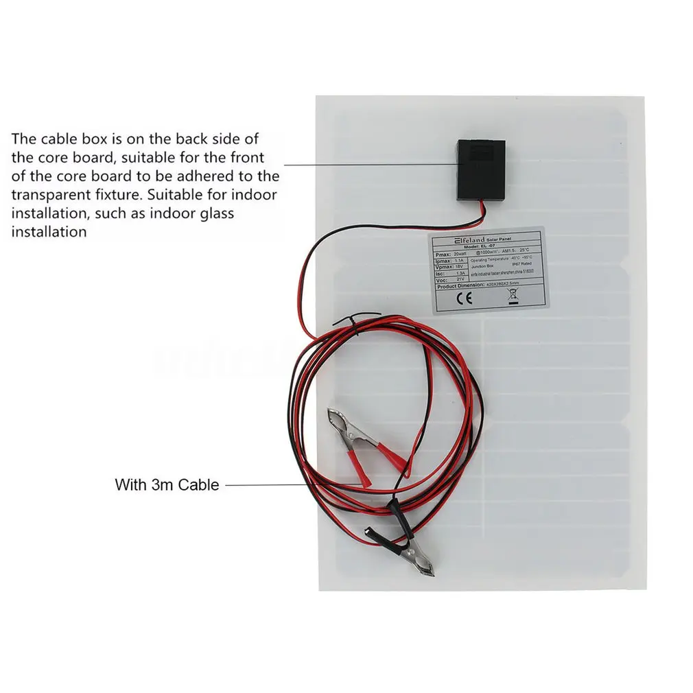 18V 20w solar panel kit Transparent semi-flexible Monocrystalline solar cell DIY module outdoor connector DC 12v charger