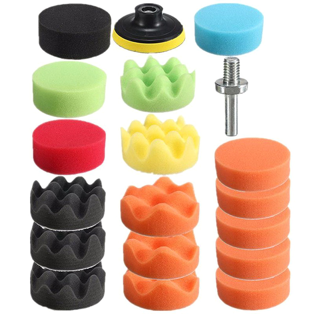 This is a professional car polisher kit with 19pcs foam buffing polishing pads, which is well made of premium material for durable and practical use. Everything you need for car polishing is provied here so you don\\'t need to find anything else to come with. Quality sponge made buffing spong pads can fully polish and wax small areas of, giving you a satisfied user experience.