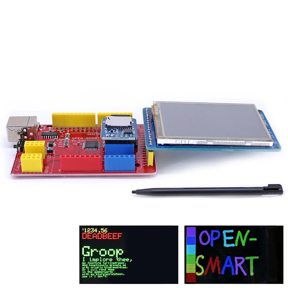 The kit includes a 2.4 inch TFT touch screen breakout board, and the secondary development is easy.