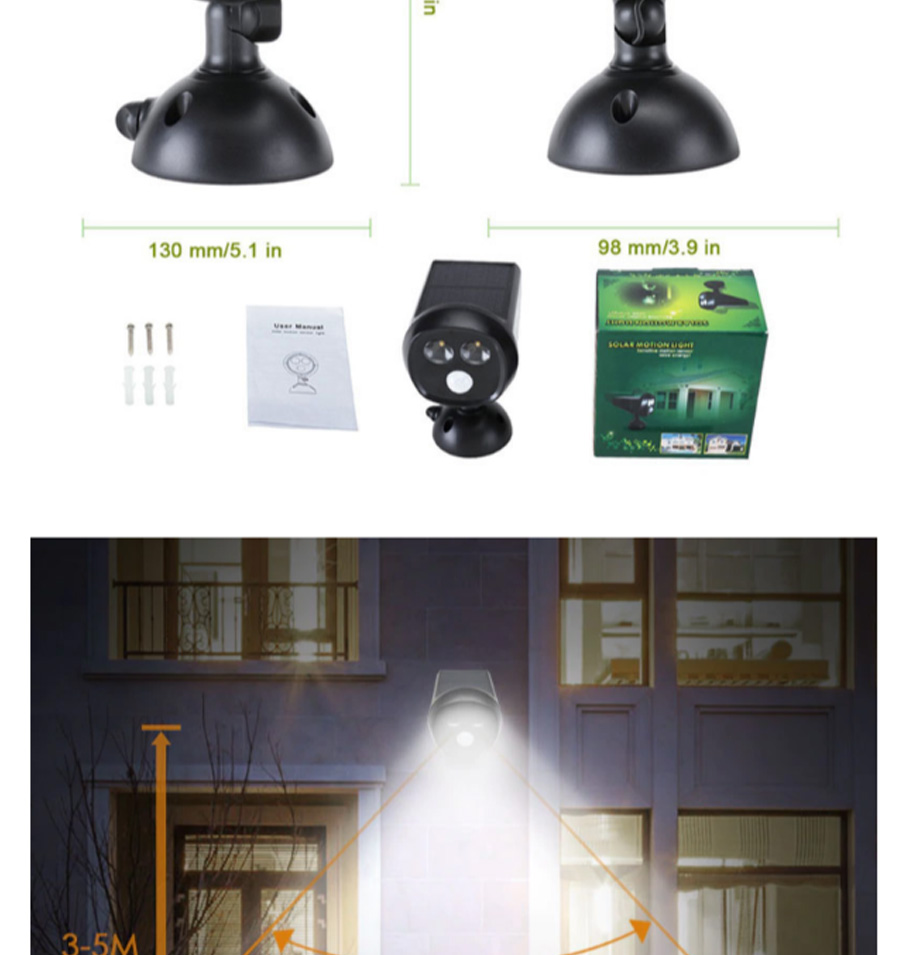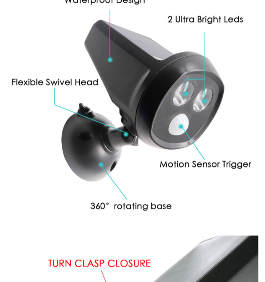 1.Solar panel:Single crystal 5.5V, 180MA, 1W