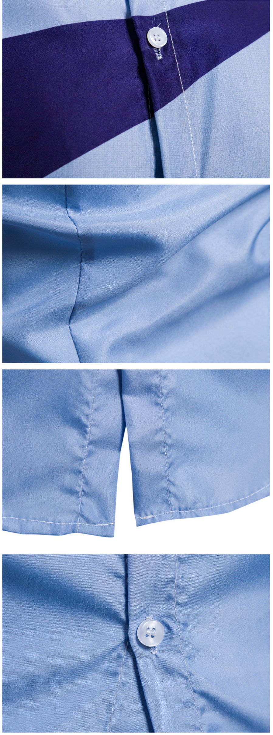 2018 New Summer Long-Sleeve Men Casual Shirt, Triangle Printing Shirt, Men\'s Fitness Clothing Tops Sky Blue/XL