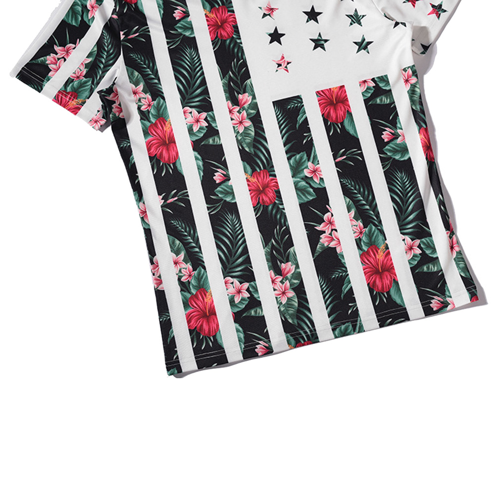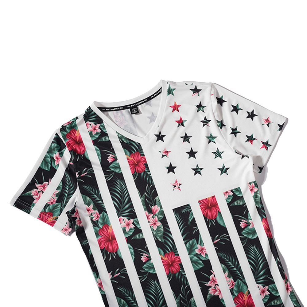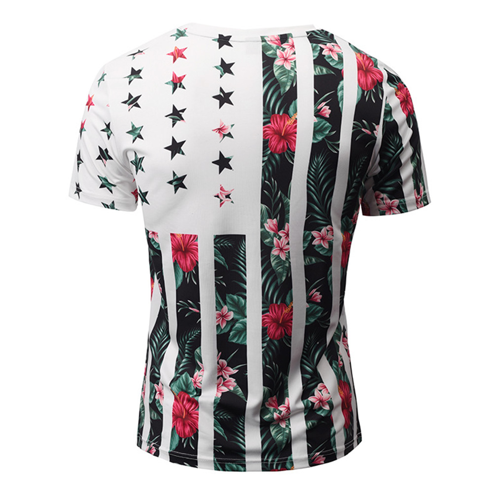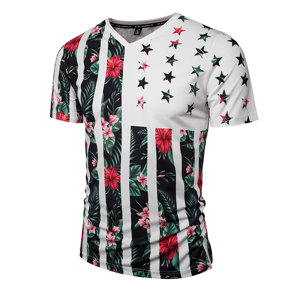 2018 New Summer Men V-Neck T-Shirts 3D Printed Plant Flower Skin Short Sleeve T Shirt White/XXXL