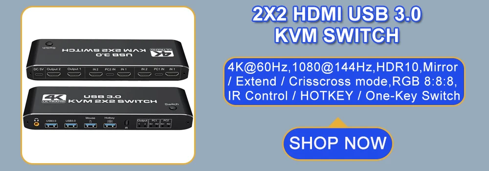 - Product Type: HDMI USB 3.0 KVM Switch (2 in 1 out)