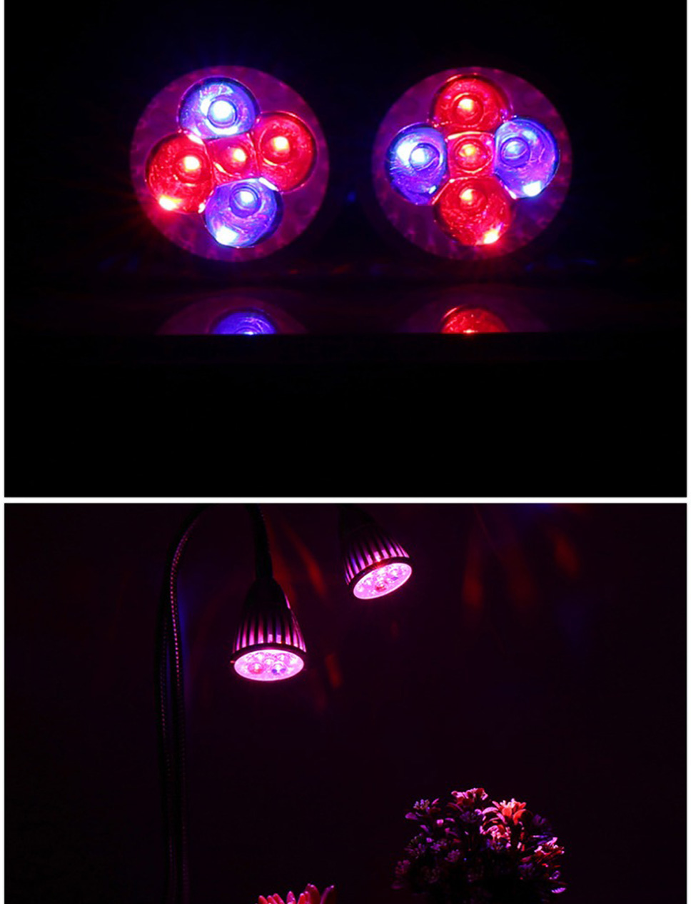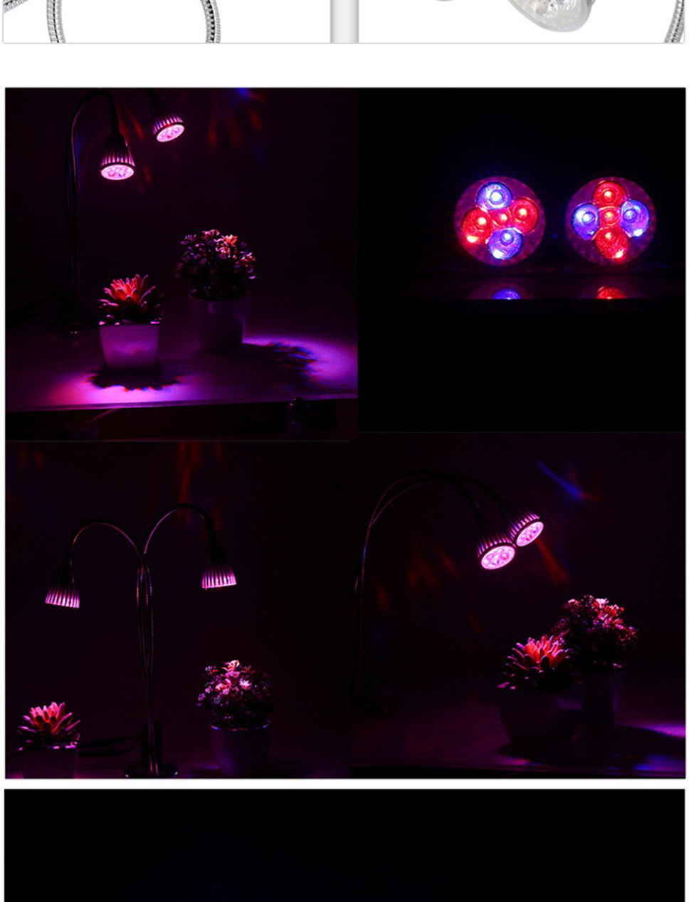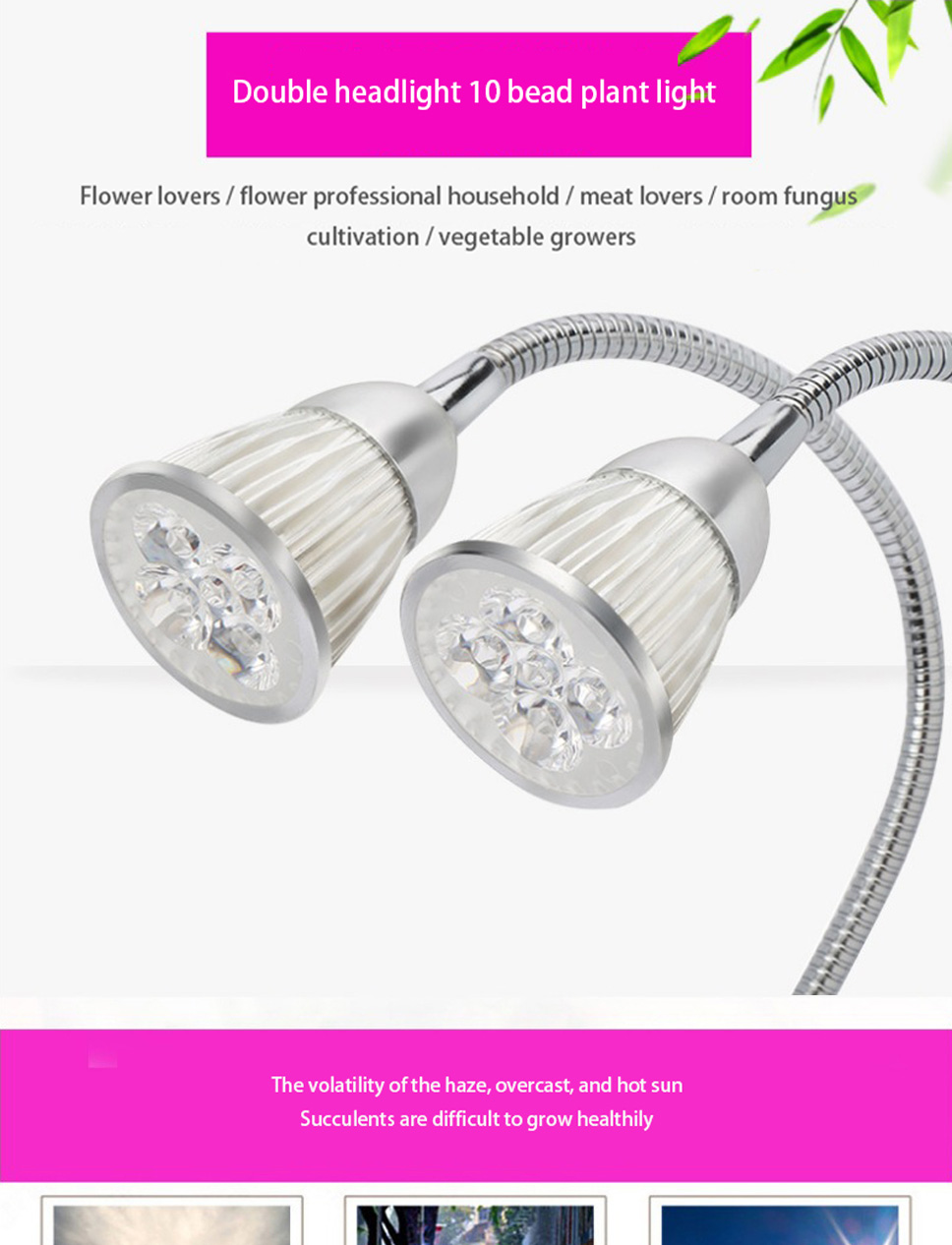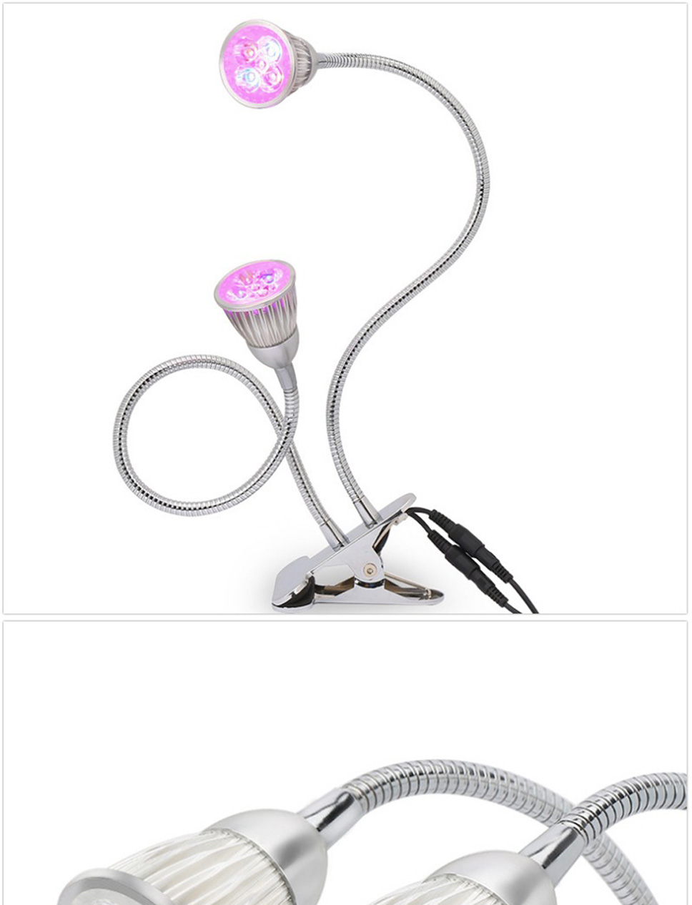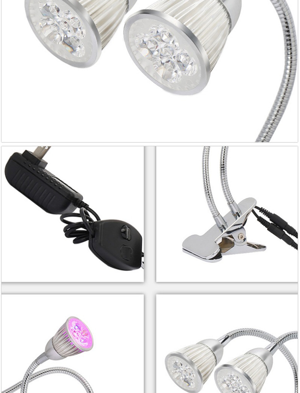 20W LED Plant Grow Lights Double-head Clip Lamp Indoor Greenhous Hydroponic Vegetable Cultivation 20W/Light Grey/US