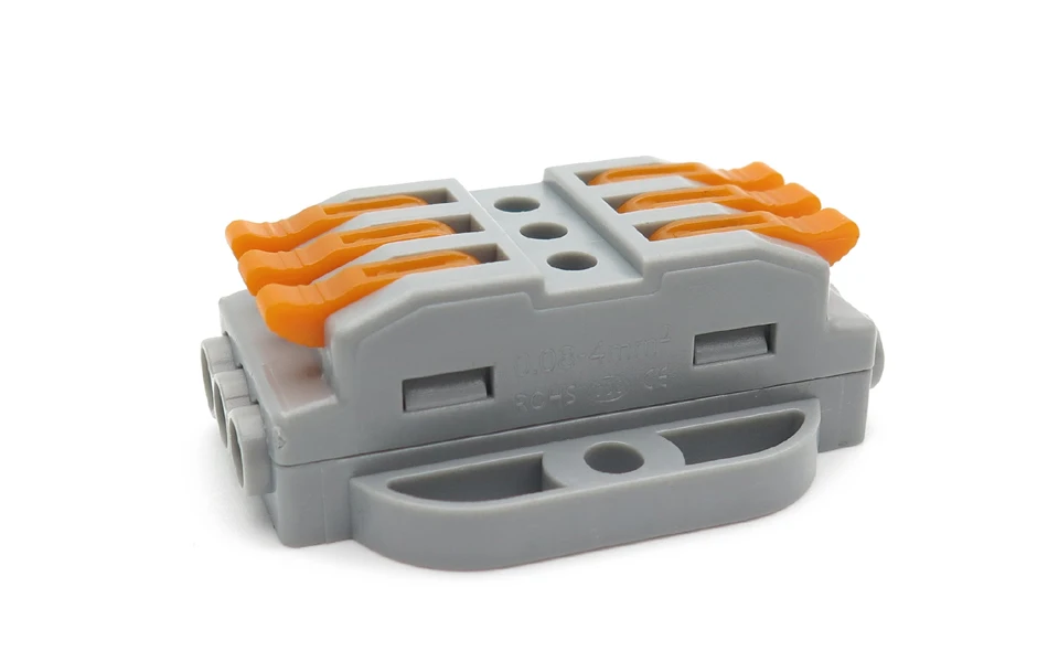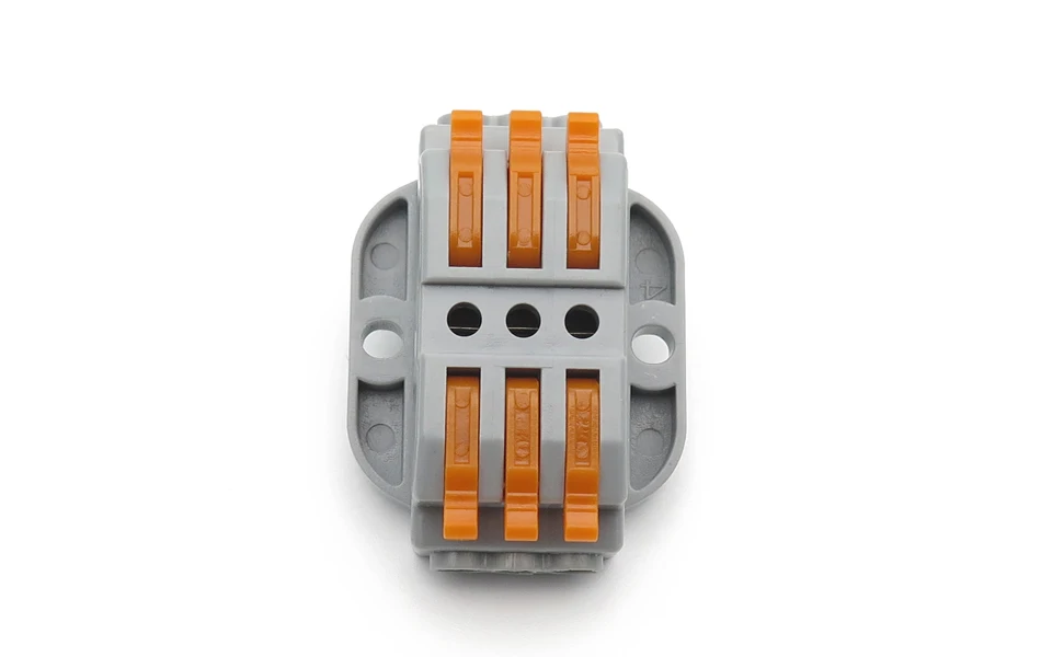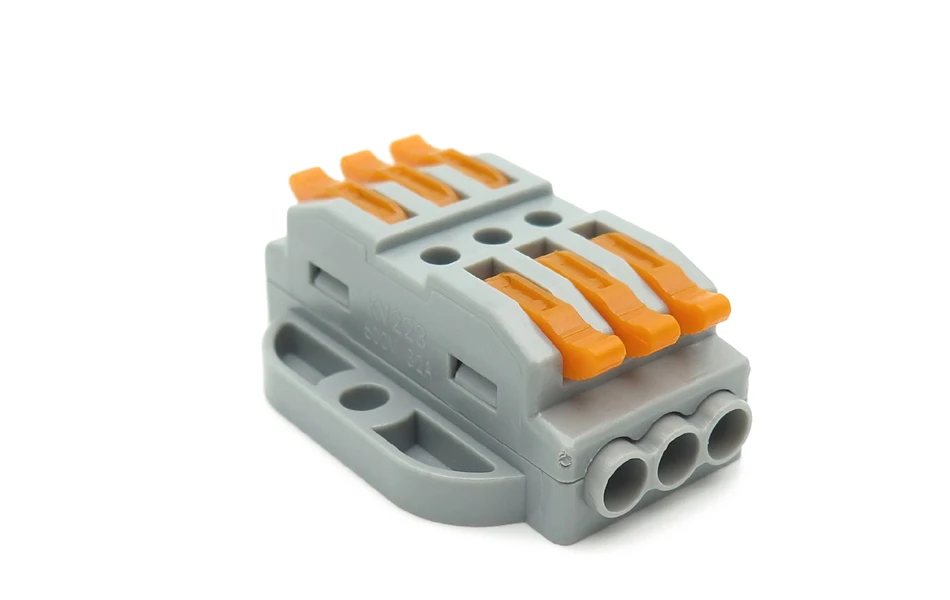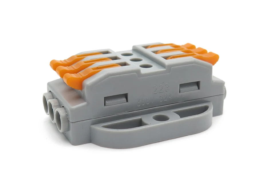 233-3 3In-3Out Fast Universal Conductor Terminal Block Wire Connectors Connect Termianls Compact With Mounting Carrier With Self Made By BIDE ELEC From China -Easy to use: Pull the lever up, insert a conductor and push the lever back down -Available as -3wire connectors -Easily terminate conductors from 0.14 to 4 mm², as well as solid and stranded conductors from 0.2 to 4 mm² (24 … 12 AWG). -Time savings for installers and device manufacturers. -Quickly install devices with higher levels of power consumption. -Safely install long cable runs with larger conductor cross sections. -Mounting carrier for installation conforming to standards Byself