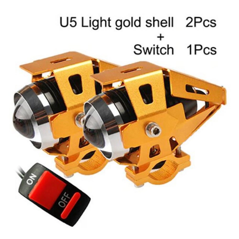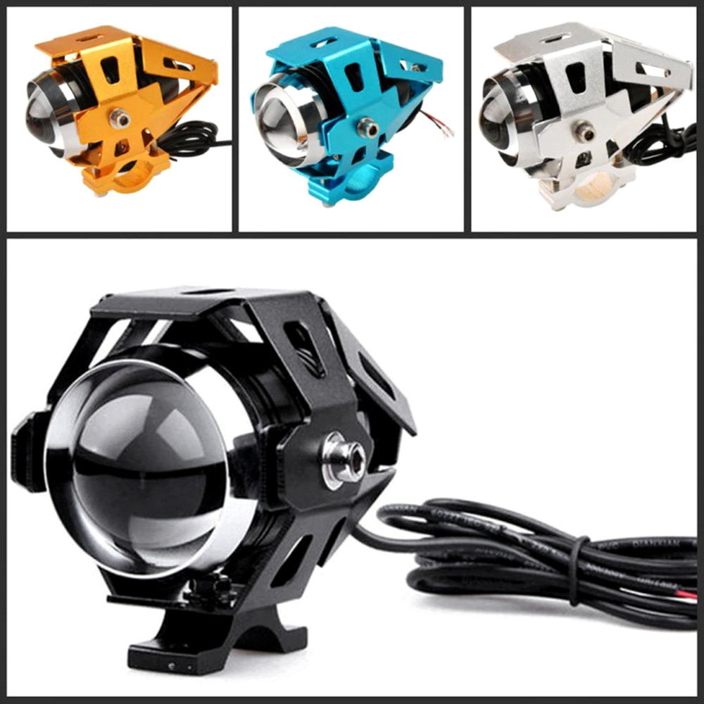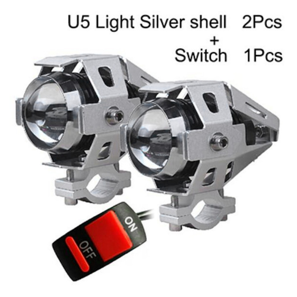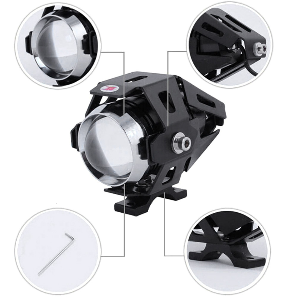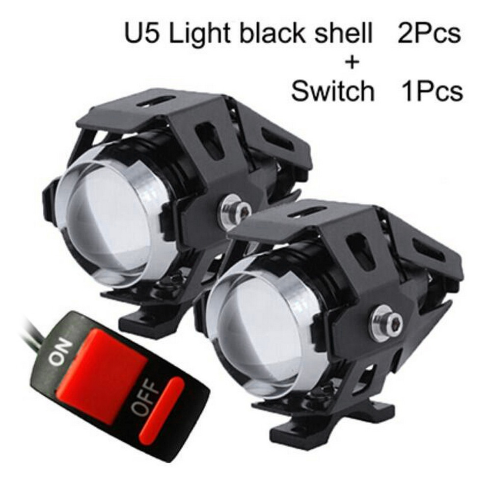 2Pcs 125W Motorcycle Headlights Auxiliary Lamp, U5 LED Motorbike Spotlight 12V Moto DRL Spot Head Light Black