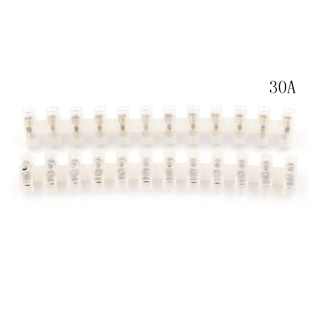2pcs 3A 6A 10A 20A 30A Screw Terminal Barrier Connector 12 Position Barrier Terminal Strip Block Electrical Wire Connection