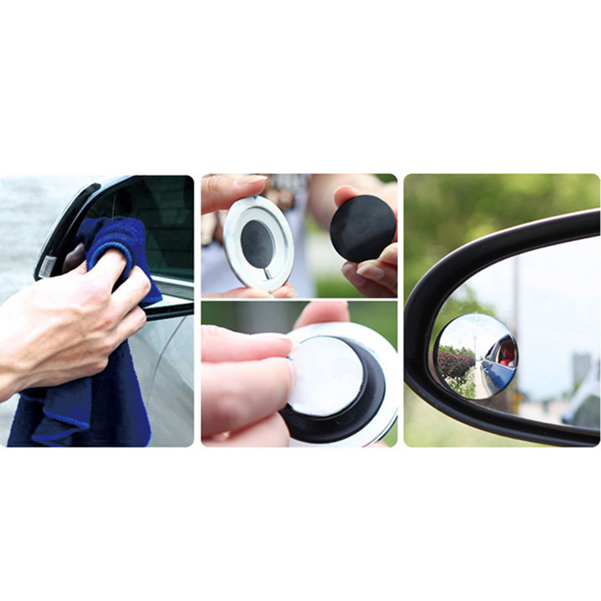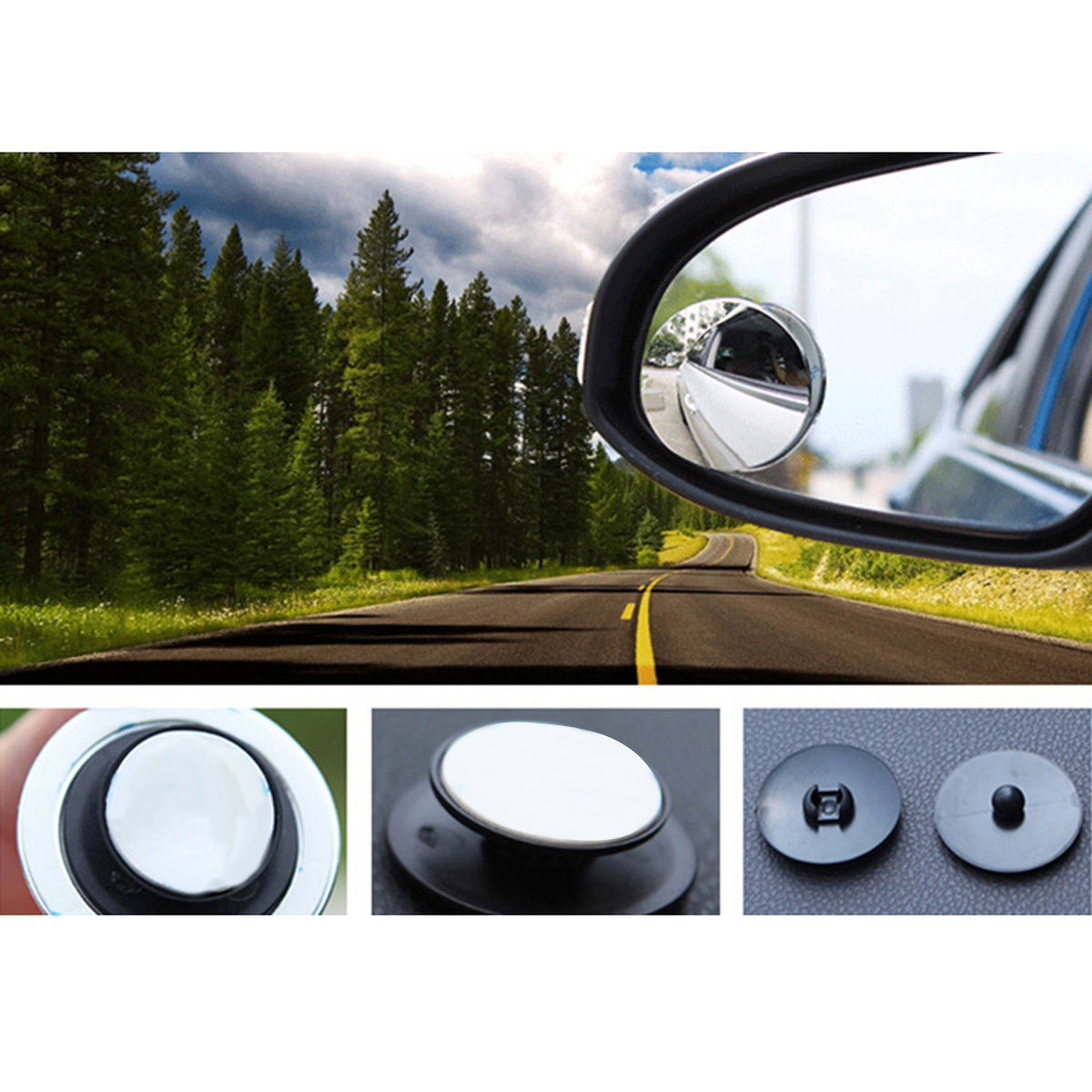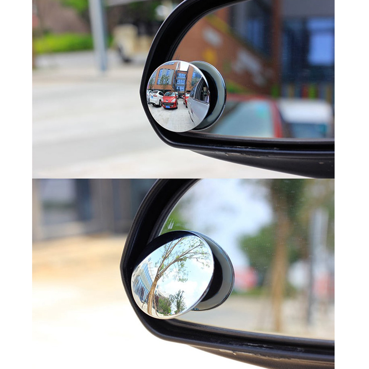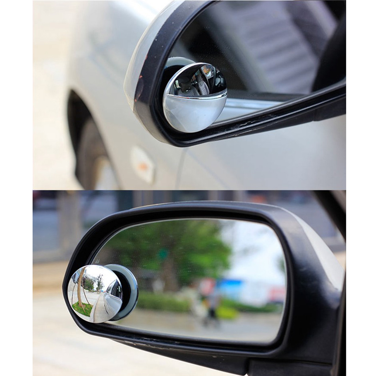 2pcs Car Rearview Convex Mirror Parking Safety 360 Degree Rotable Rimless Universal Wide Angle Round Blind Spot Mirror Silver