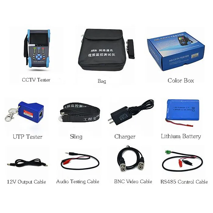 The new HD coaxial tester ,built-in high definition 3.5”LCD-TFT 480(RGB)x320 resolution, view the image, easy and directly displays the camera image , support PAL/NTSCLCD screen brightness/Contrast/Color Saturation adjustable. Suitable for field construction and maintenance work