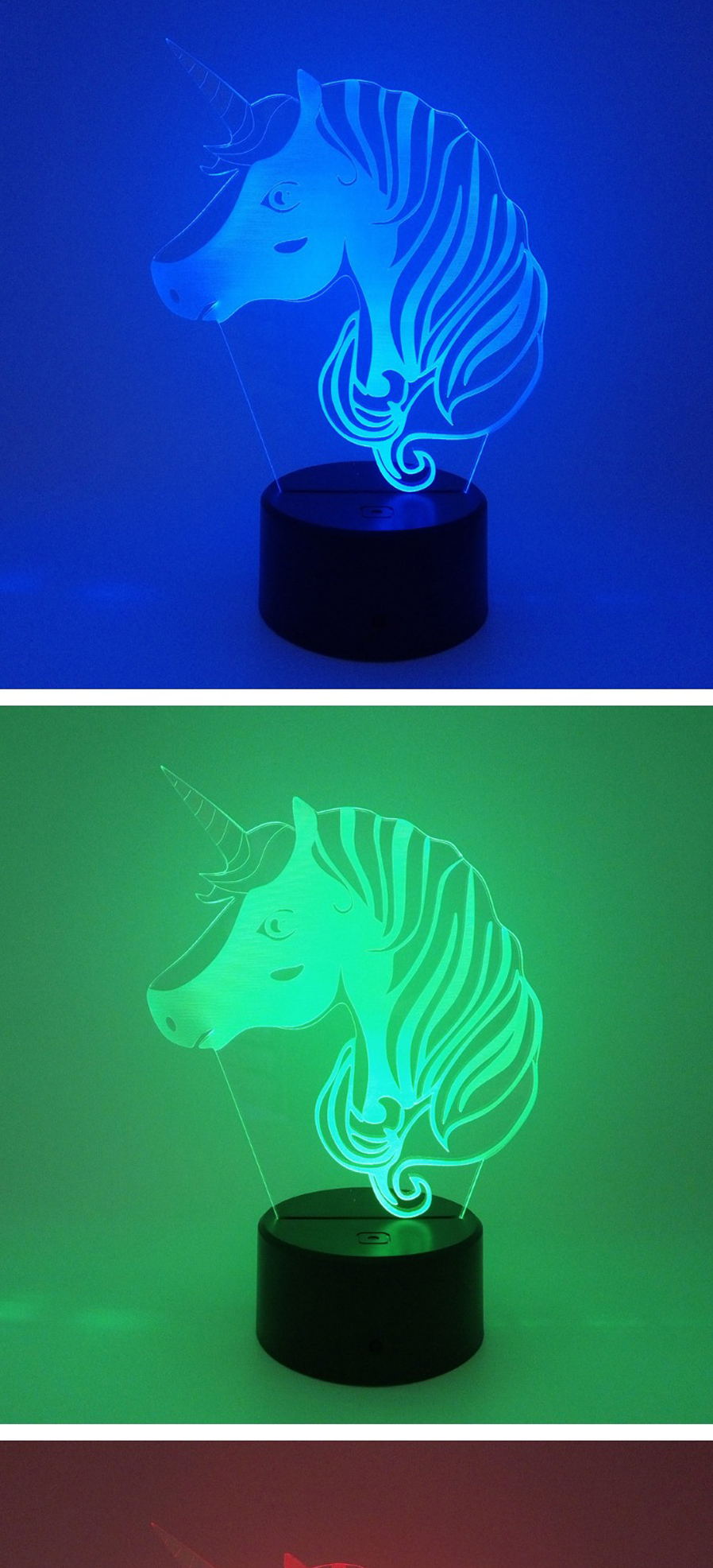 Product Description Model Number: Unicorn 3D Night Light Warranty: - Usage: Holiday Battery Type: AA Is Batteries Required: No Is Batteries Included: No Light Source: Other Body Material: ABS Voltage:...