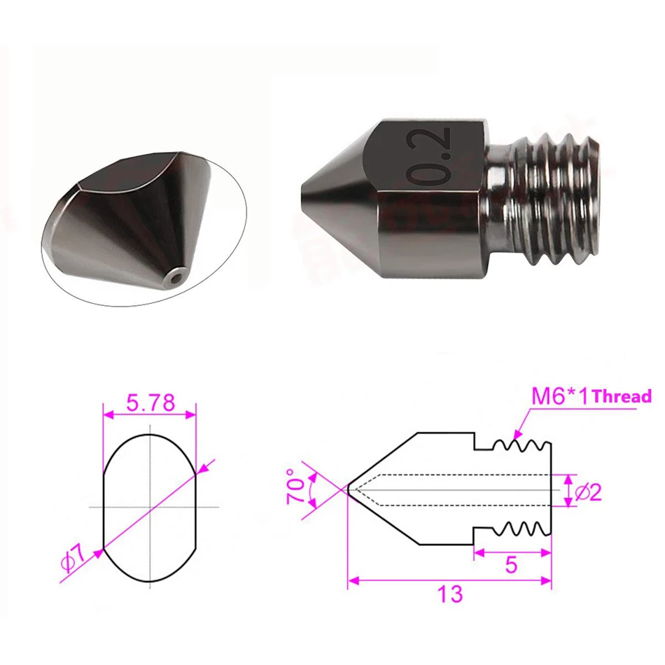 【Good Performance】The size of the 3D printer nozzle is 0.4 mm, which is suitable for common 1.75 mm 3D printer filament, carbon fiber, glass fiber, etc. The total hardness is 50, and the surface hardness is 55-60. The viscosity coefficient is small, extruder nozzle diameter error less than 0.02 mm.