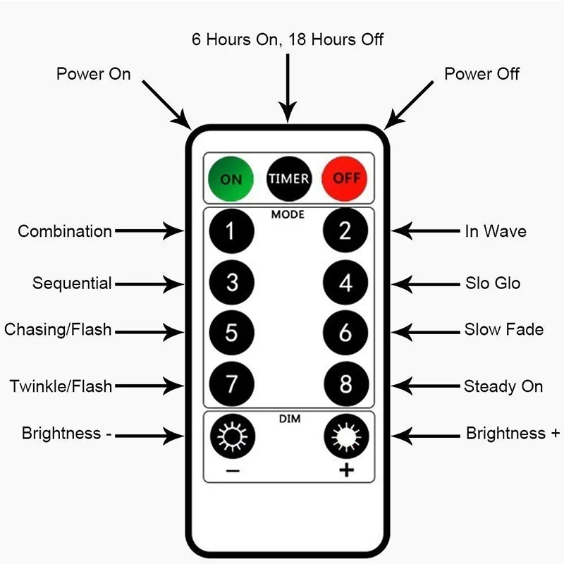 8 Modes: Combination, In Wave, Sequential, Slo glo, Chasing/ Flash, Slow fade, Twinkle/Flash, Steady