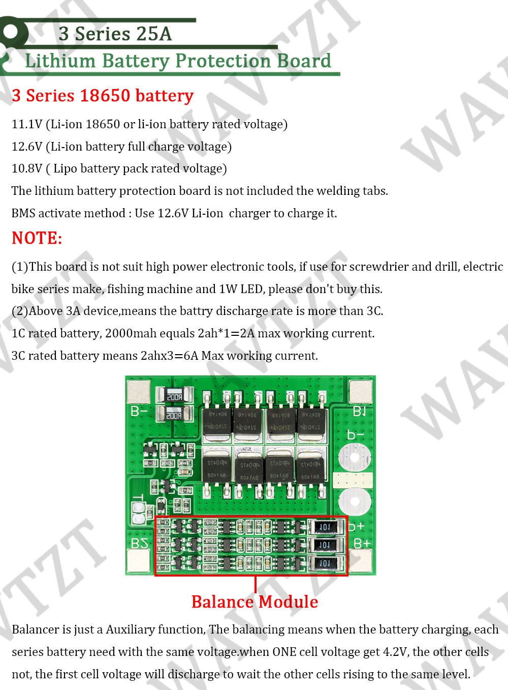 3S 6A 8A 10A 20A 25A 40A 60A Li-ion Lithium Battery 18650 Charger PCB BMS Protection Board For Drill Motor Lipo Cell Module