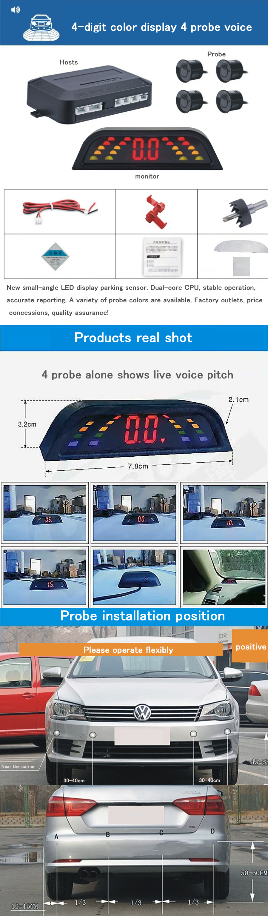 30CM¡«250CM, centimeter-level display accuracy, accurate display obstacle distance,