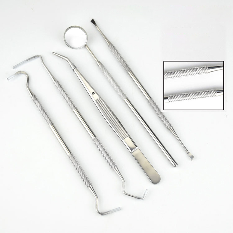 5pcs Dentist Tool Stainless Steel Teeth Clean Tweezer Scraper Scaler Mirror Dental Probe Dental Hygiene Oral Care Set