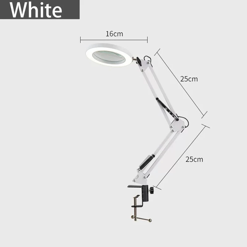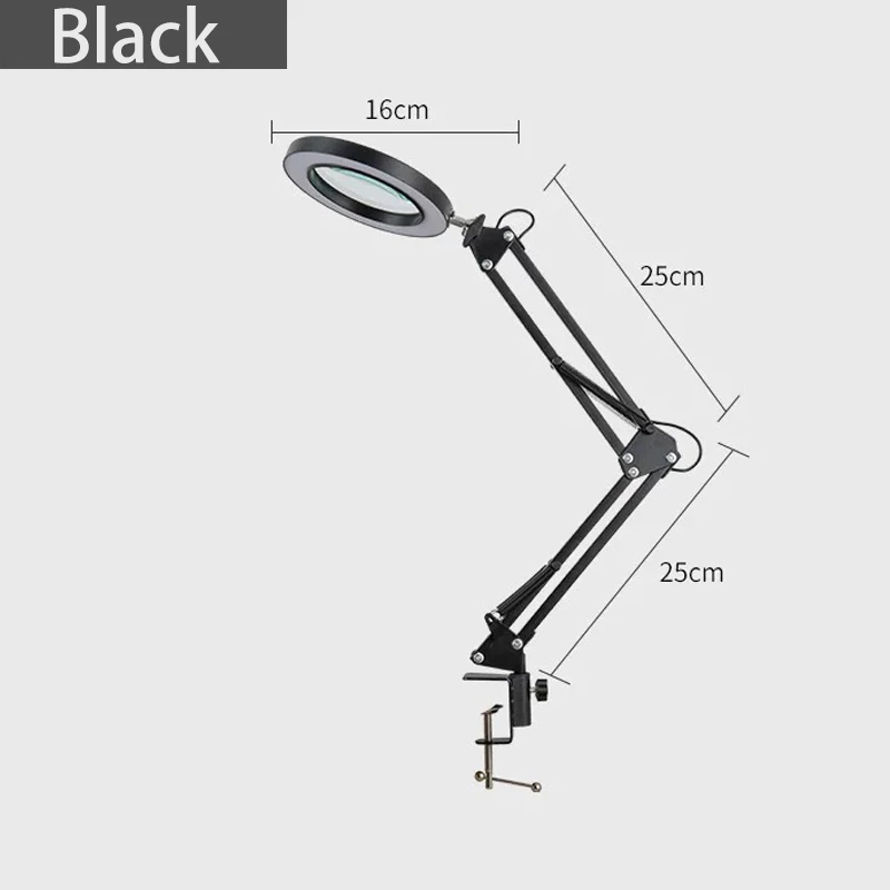 【Adjustable Swing Arm】Magnifying glass with light has 360° rotating lamp, 270° adjustable metal arm and flexible adjustment arm can be extended to 250MM + 250MM height. Strong clamp supports up to 2.36-inch tabletop. Sturdy metal arm collocation with perfect led lamp allows you to easily adjust the light in any position you need.