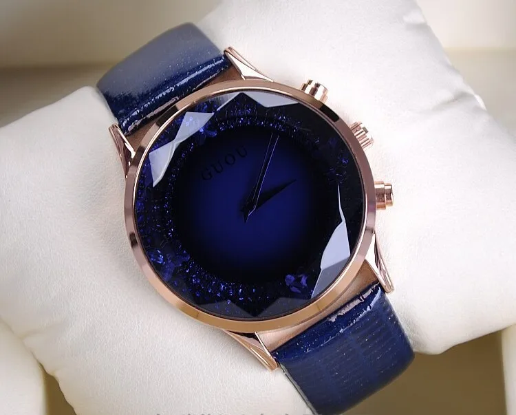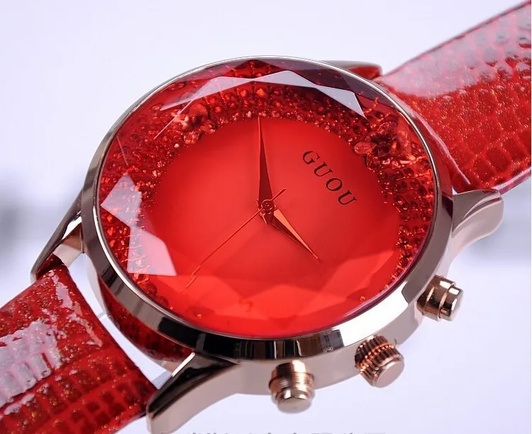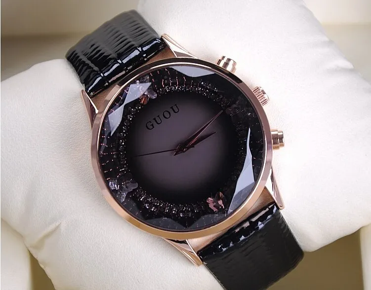 6 Colors New Style Women Watches Lady's Luxury Wristwatches Genuine Leather GUOU Dress Watch Women Rhinestone Watches Clocks