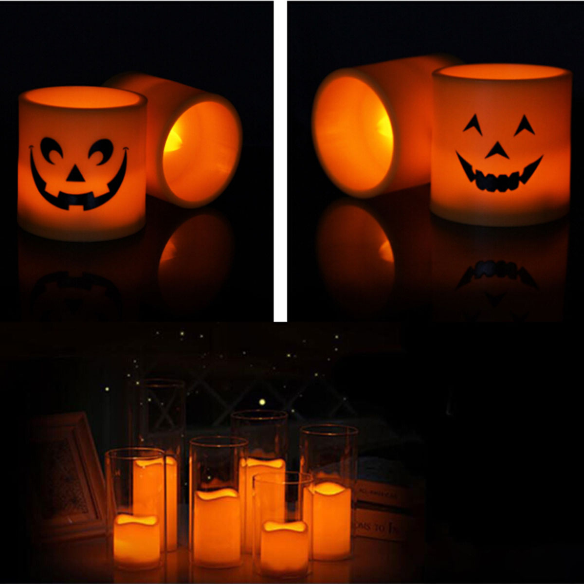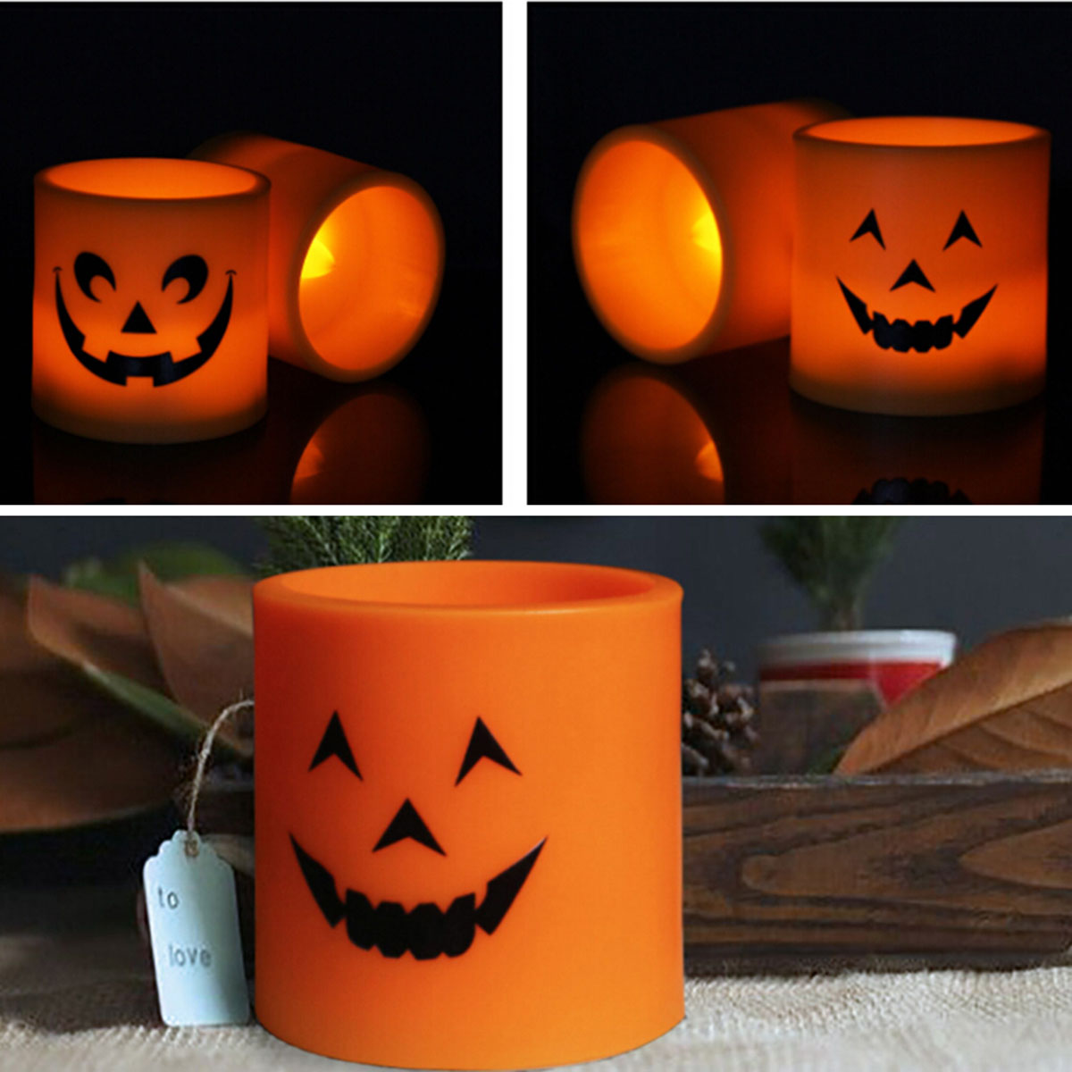 6 Pcs Plastic Pumpkin LED Candle Light Decorative Lamp Yellow Light For Halloween Party Yellow/Orange/0-5W