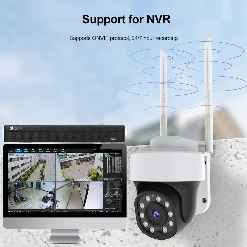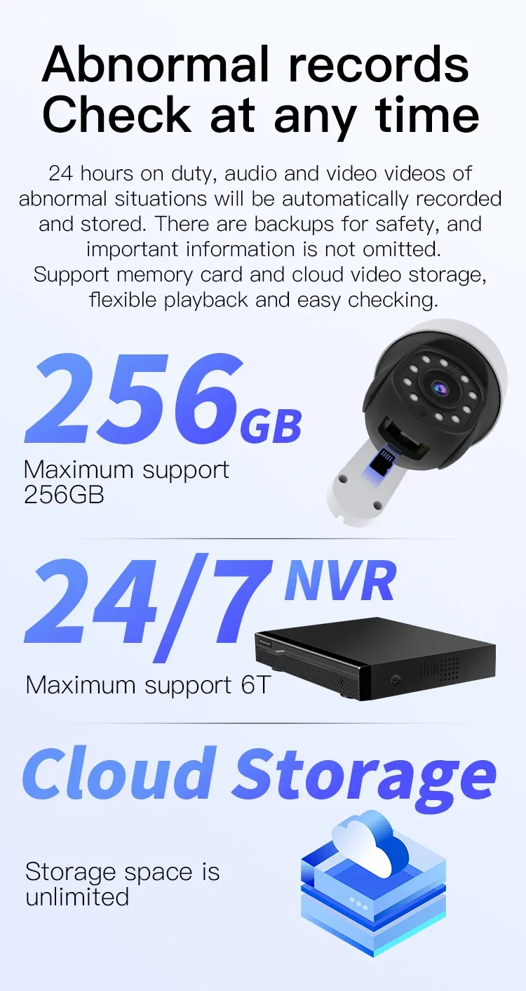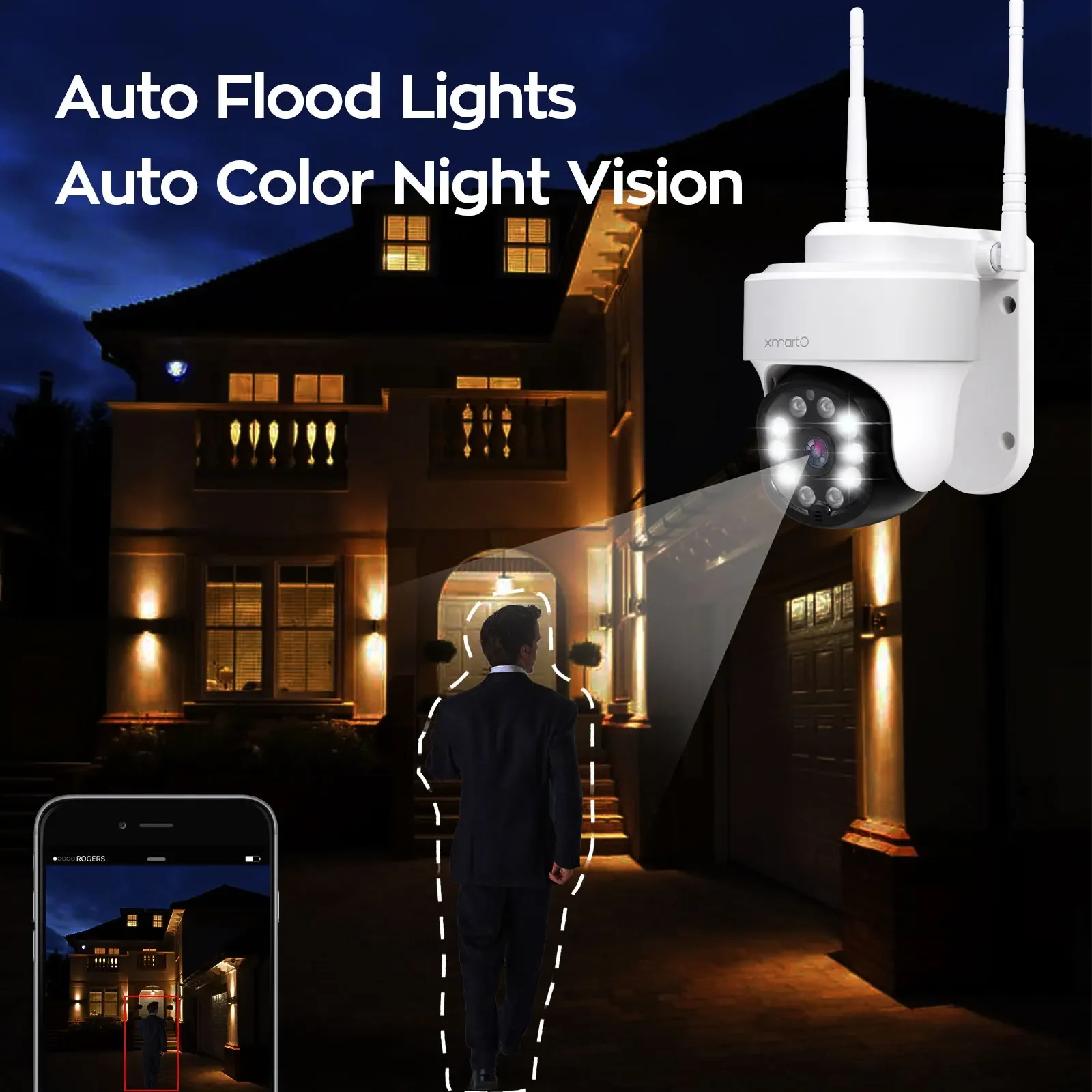 The camera will automatically switch to the corresponding night vision mode, and will automatically light up white to warn intruders after detecting a human body.