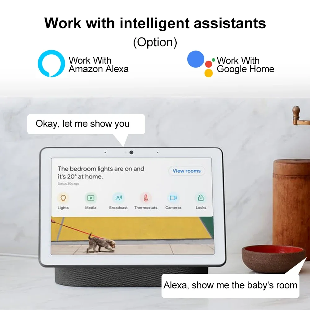 You can connect to your alexa or google home voice assistant to quickly view the camera's live feed through the voice assistant