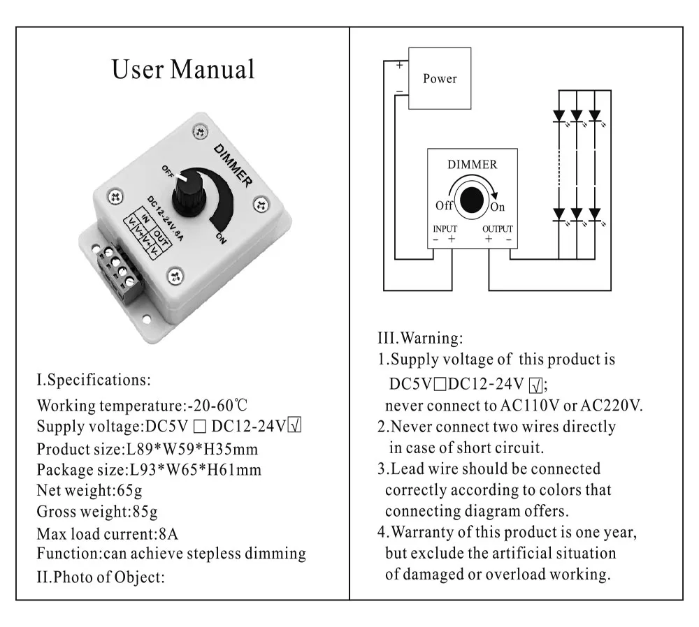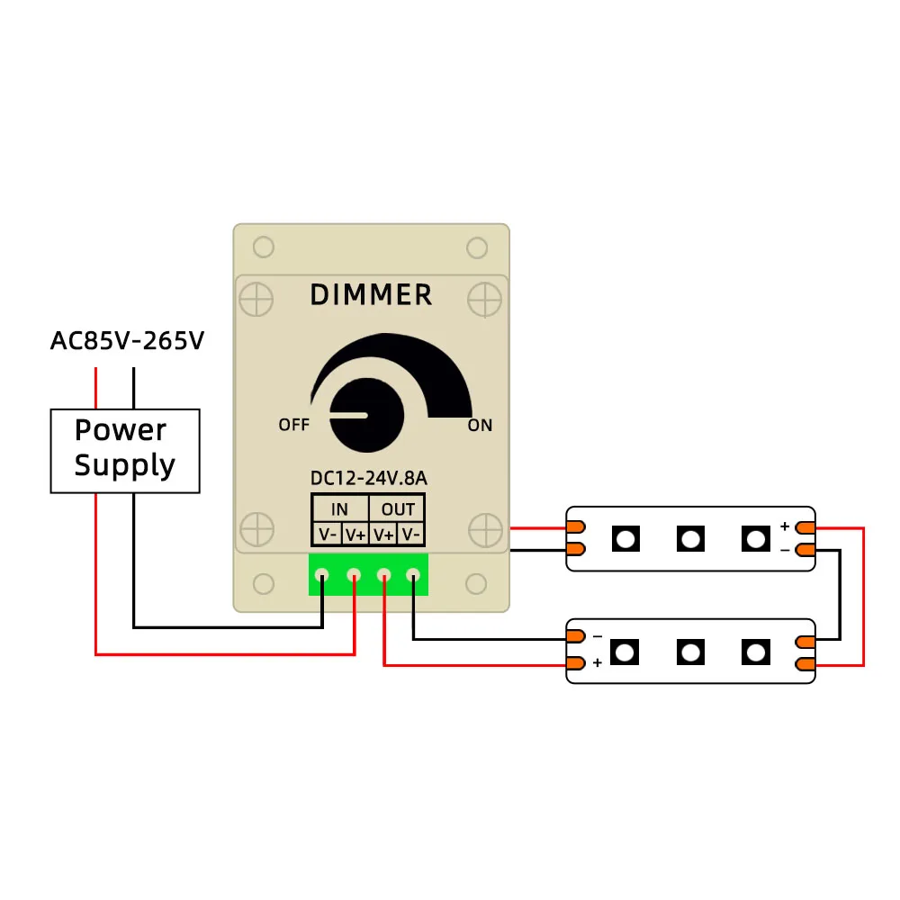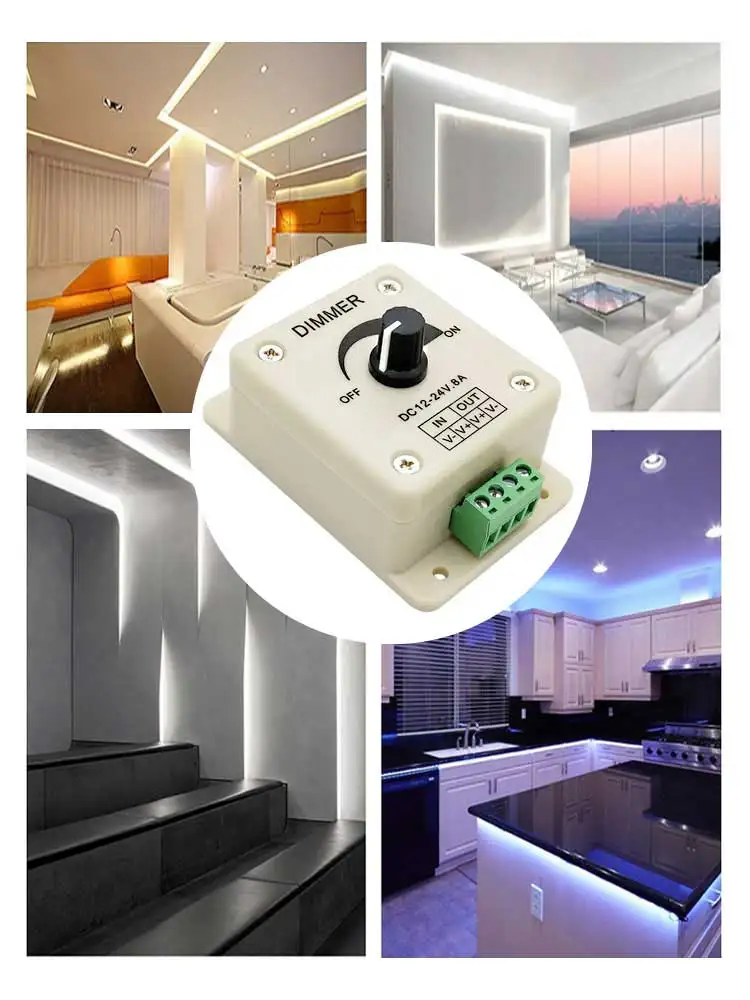 8A Single Color Knob Dimmer 12V 24V LED Rotary Wall LED Dimmer Switch popular in Led Controller Dimmers