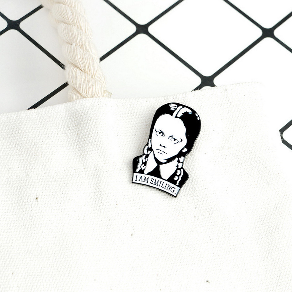 Aluminium Alloy Wednesday Addams I AM SMILING Brooches Fashion Trendy Jewelry For Women White