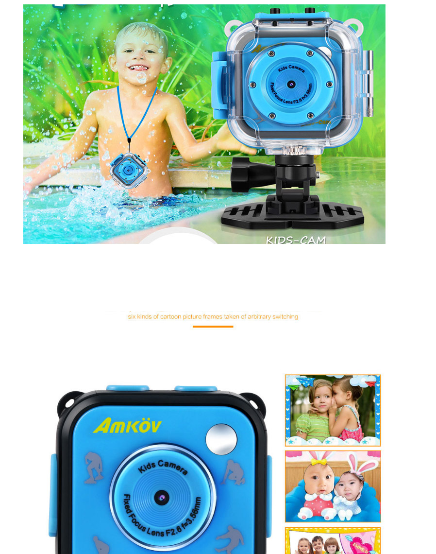 Amkov HD 1.77 Inch Waterproof Sports Children Camera, Mini DV Digital Video Camcorder For Boy Girl Birthday Gift Blue