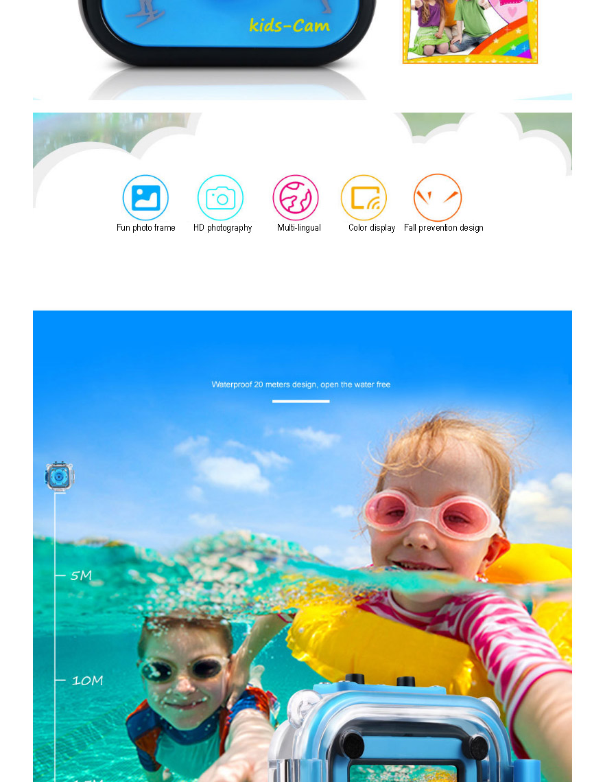 20 meters waterproof design, open water shooting freely