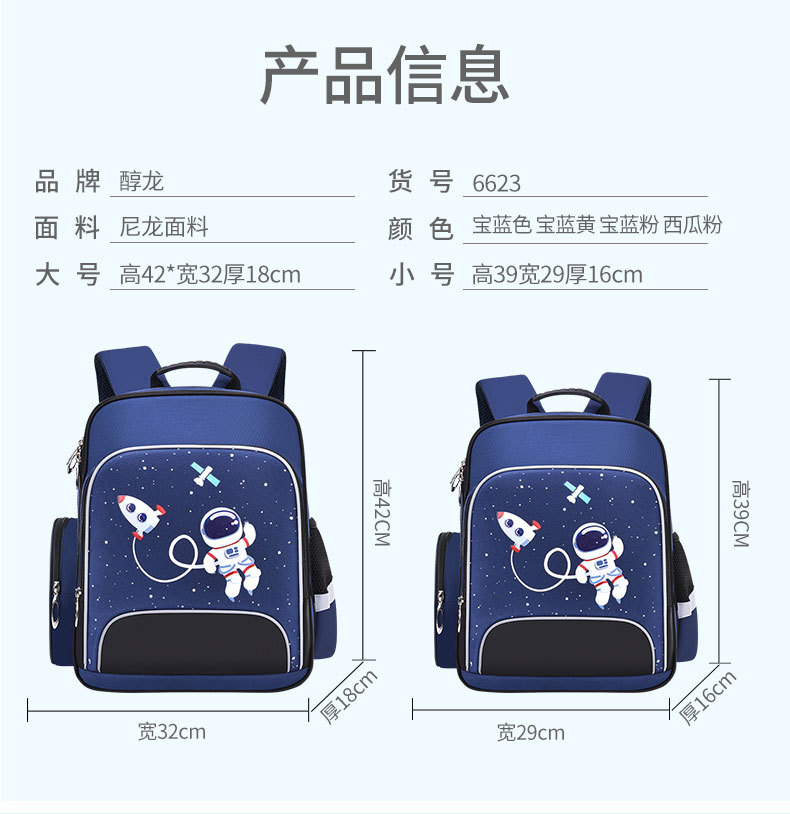 Astronaut primary school schoolbag new 1-6 grade cartoon lightening children's schoolbag printing schoolbag