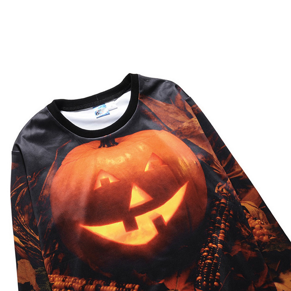 Autumn Winter Halloween Casual O-Neck Hoodies 3D Print Pumpkin Lamp Loose Sweatshirts For Men Brown/M