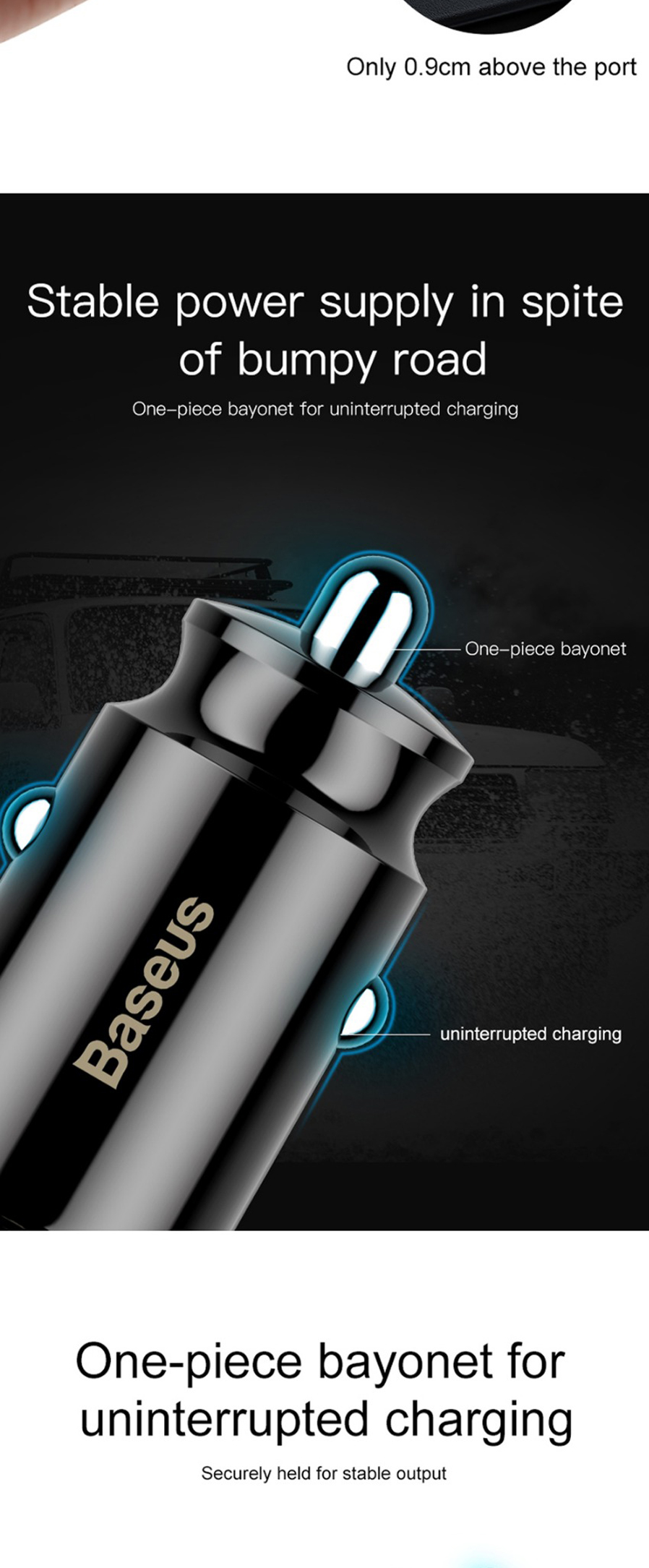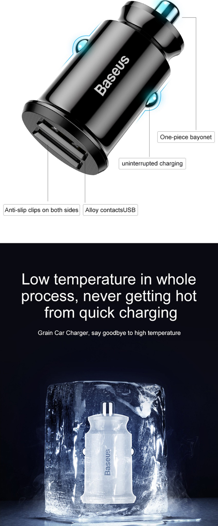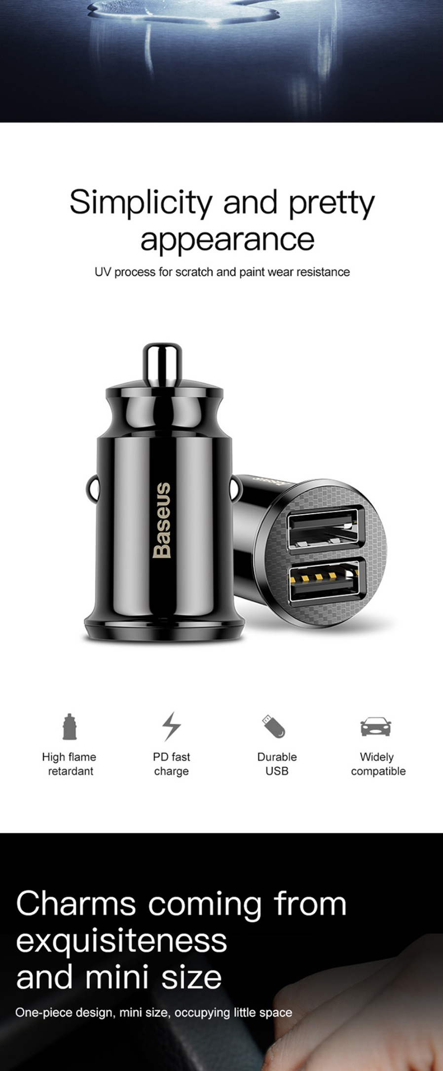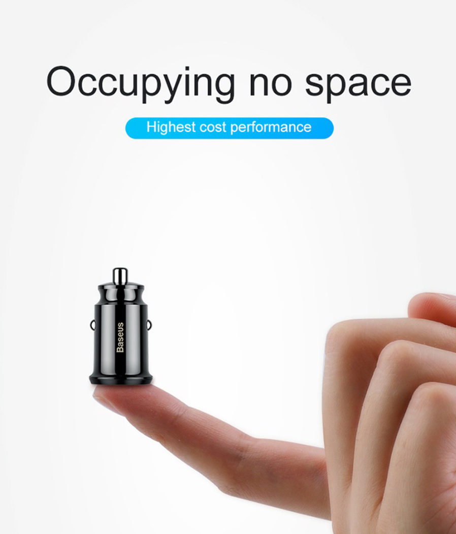 Baseus Mini 3.1A Fast Charge Dual USB Car Charger for IPHONE, Samsung Mobile Phones Tablet PCs - Whie