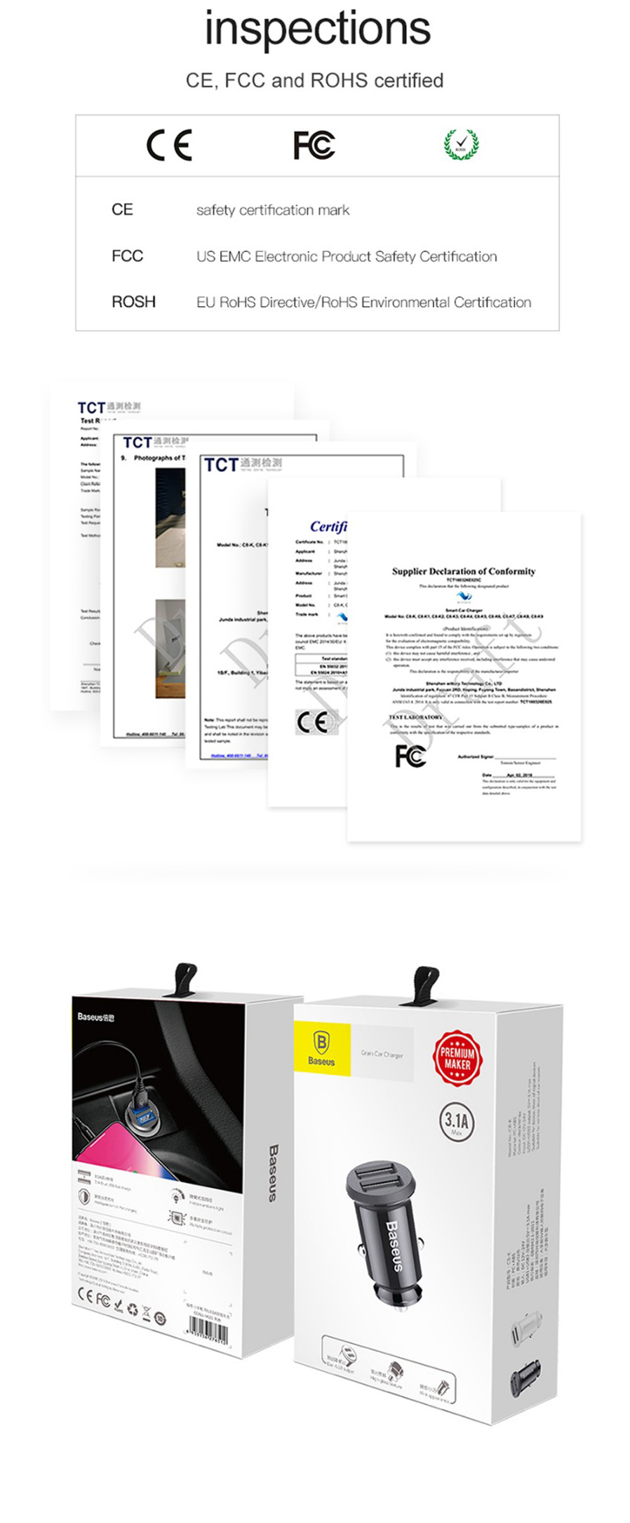 1: Dual USB output 3.1A dual U fast charge intelligent shunt multiple security protection