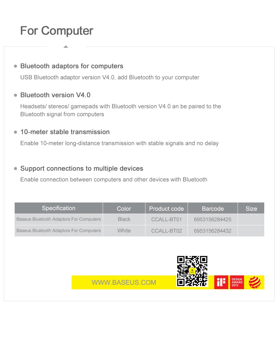 Baseus USB Bluetooth Dongle Adapter 4.0 for Tablets PC Mouse Keyboards Gamepads Printers Bluetooth Earphone Receiver Transmitter