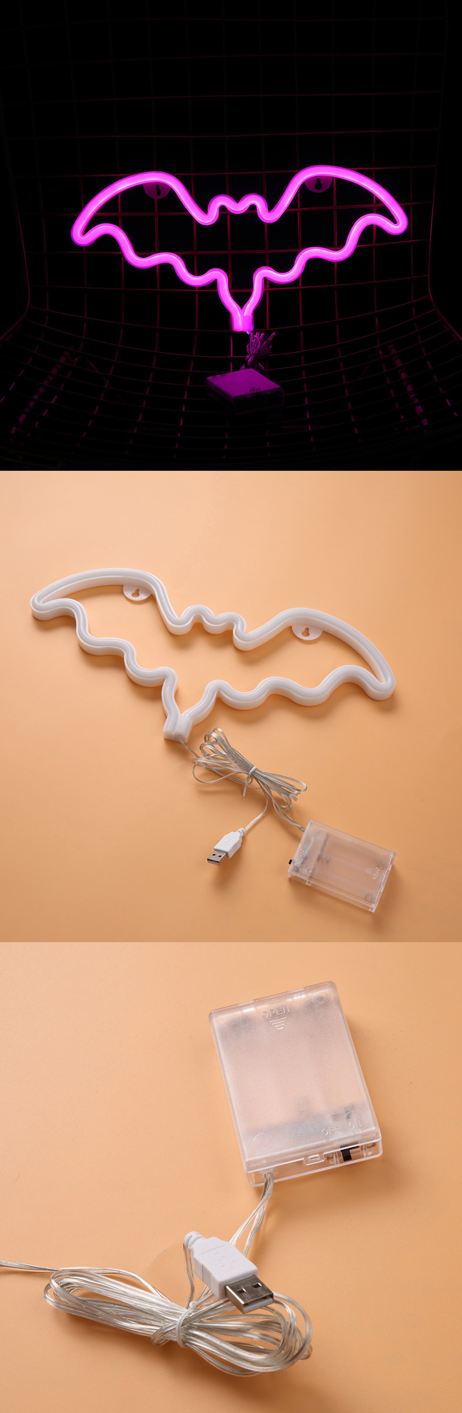 Product Description Model Number: Bat Neon Warranty: 5 Months Usage: Holiday Battery Type: None Is Batteries Required: Yes Is Batteries Included: No Light Source: LED Bulbs Body Material: PVC Voltage:...
