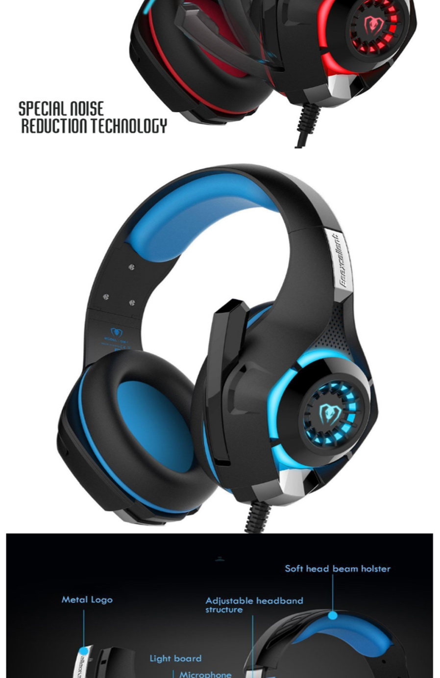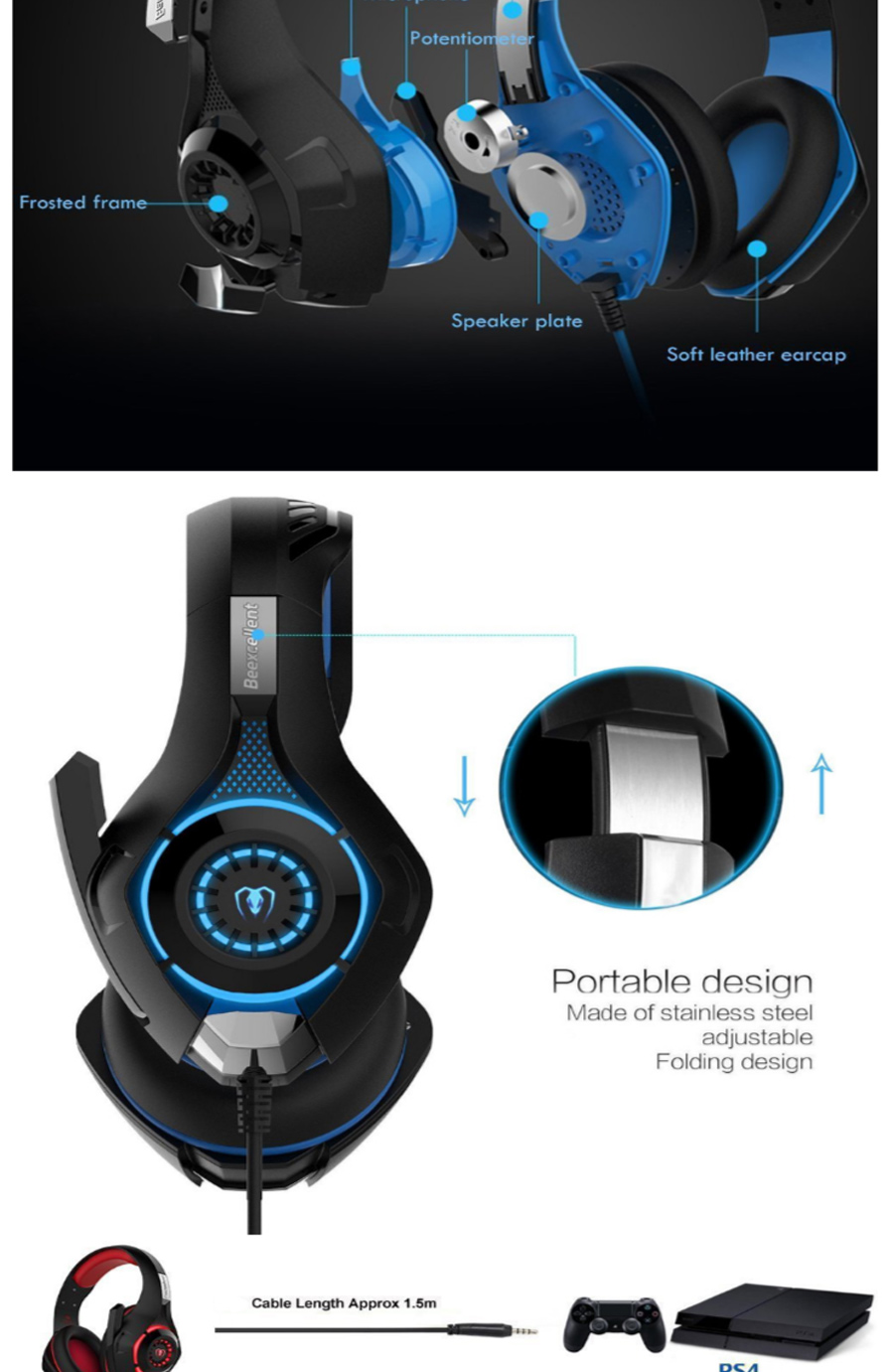 Beexcellent GM-1 Headphones Gaming Headset With Mic Splitter Cable Blue