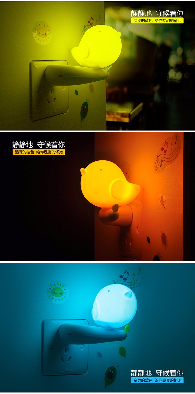 Bird Night Lights Control Led Infantil Energy Saving Wall Lamp Creative Sensor Switch Control Jungle Bird Indoor Wall Yellow/CN