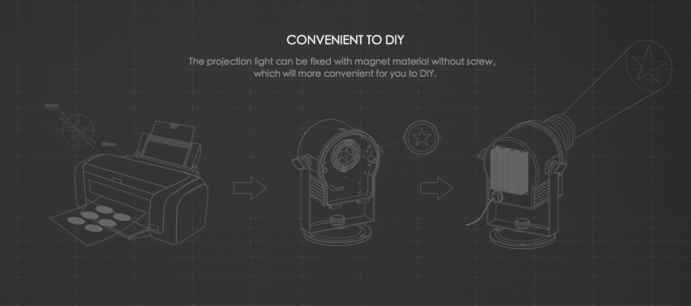 5: Launch distance up to 15 meters, zoom lens to adjust the focus, you can freely put your favorite pictures, such as holiday celebration text, relatives and friends photos (DIY out of the box video)