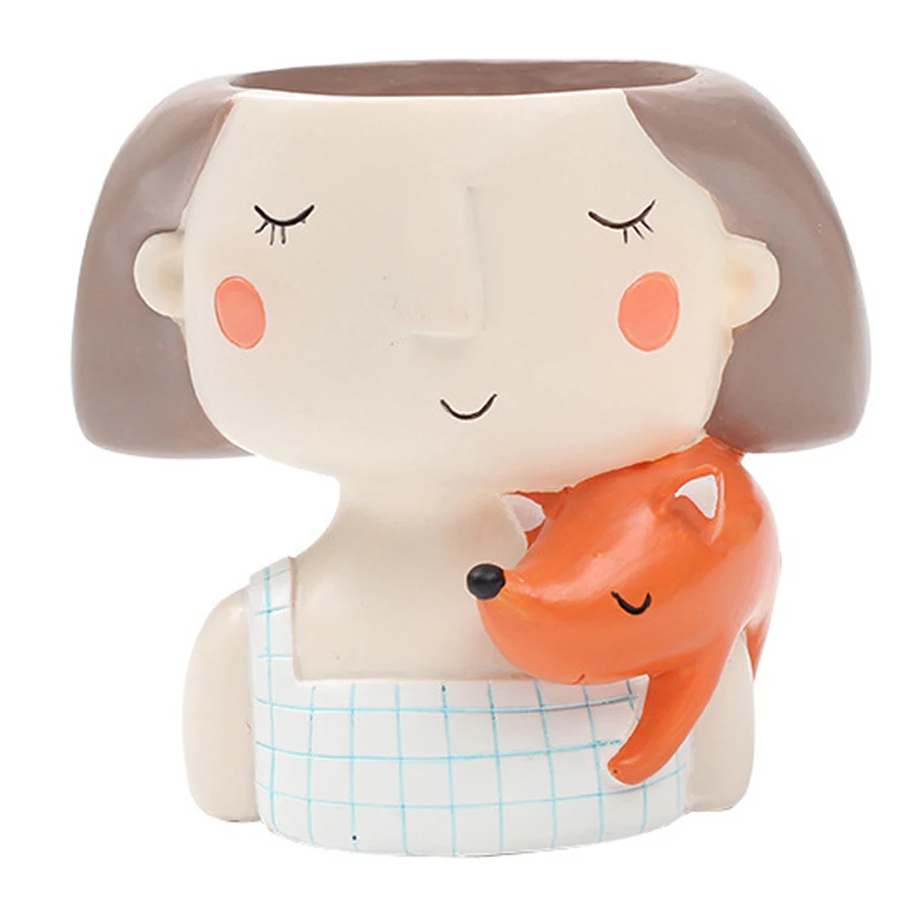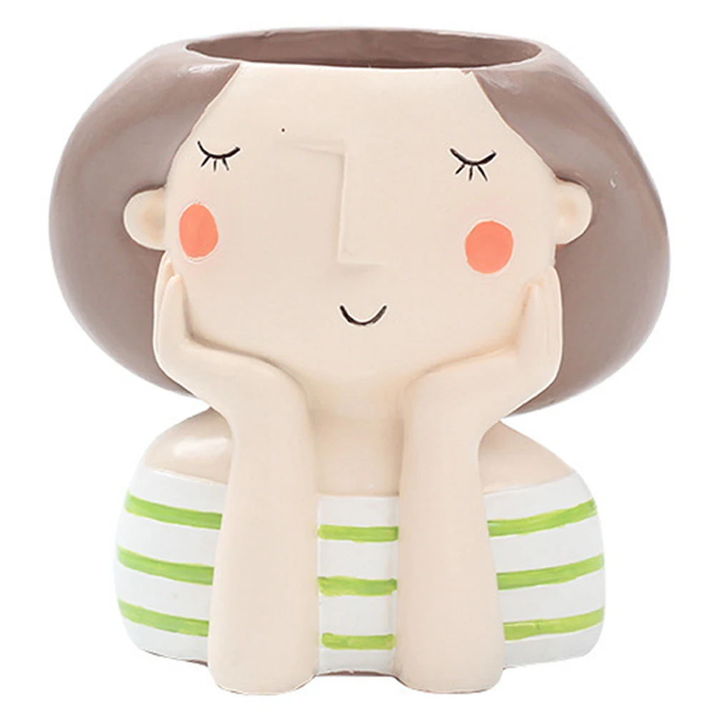 Bloem Planten Opslag Container Bloem Planter Bloempot Creëren Ontwerp Menselijk Gezicht Vaas Decor Schattige Pop Hars Bloempot wholesale bulk price